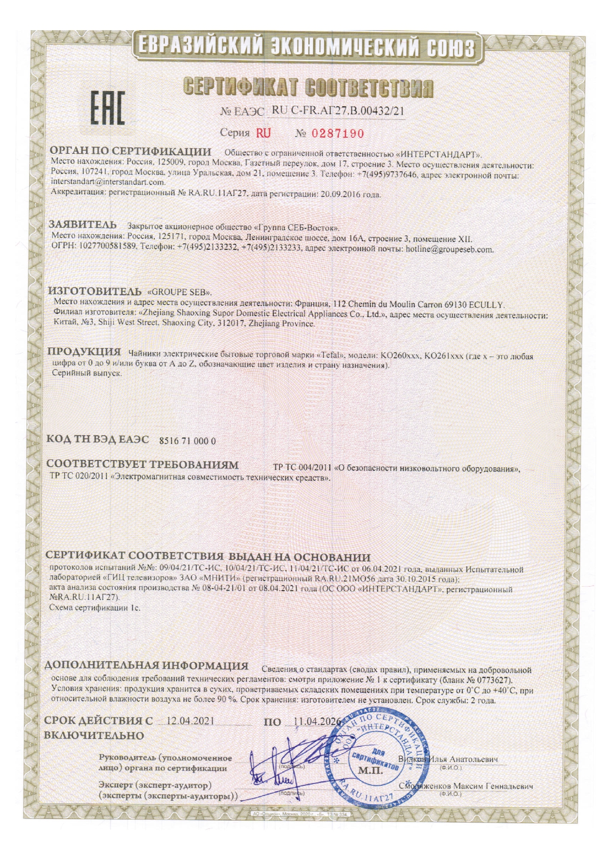 Чайник TEFAL KO260830, 1,7 л, 2150 Вт, закрытый нагревательный элемент, двойные стенки, пластик, черный Код товара: 456512 5 499,78 ₽ Купить Производитель:TEFAL Электрический чайник TEFAL KO260830 объемом 1,7 л может похвастаться наличием двойных стенок корпуса, обеспечивающих длительное поддержание максимальной температуры воды. Благодаря двойным стенкам корпуса чайник не перегревается, и до него спокойно можно дотронуться рукой, не боясь обжечься. Мощность домашнего помощника составляет 2150 Вт – вам не придется подолгу ждать закипания воды. Для большего удобства в модели TEFAL KO260830 предусмотрена шкала уровня воды. Встроенный индикатор оперативно сообщит о готовности чайника приступить к подогреву жидкости. Защитная технология блокирует включение чайника при отсутствии достаточного объема воды. Функция автоматического отключения сработает в тот момент, когда жидкость из основного резервуара нагреется до максимальной температуры. Один переключатель с встроенной подсветкой – для включения и выключения чайника; автоматическое выключение в целях повышения безопасности. Снимайте и ставьте чайник с любой стороны – круглое основание с центральным контактом обеспечивает удобное использование чайника без провода. Крышка чайника широко открывается для удобства наполнения его водой. В носике прибора спрятан фильтр от накипи. Компактное хранение обеспечит отсек для сетевого шнура. Производитель оставляет за собой право без предварительного уведомления вносить изменения в технические характеристики, комплектацию и конструкцию, не ухудшающие эксплуатационные характеристики изделия.Производство: КитайОбъем: 1.7 лМощность: 2150 ВтМатериал корпуса: пластикВид нагревательного элемента: закрытыйАвтоотключение при закипании: даСерия: KO260830Отключение при отсутствии воды: даИндикатор включения: даИндикация уровня воды: даВращение на 360°: даФильтр от накипи: даЦвет корпуса: черныйШирина: 221 ммВысота: 271 ммГлубина: 191 ммВес (без упаковки): 1.24 кгВес: 1,72 кгРазмер упаковки: 19.1 × 27.3 × 22.1 смОбъём: 0.0136 м3Промежуточная упаковка: 3 штТранспортная упаковка: 3 штШтрих-код: 3045386375264 Файлы Приложение-1.pdf Сертификат-1.jpg Сертификат-2.jpg Сертификат-3.jpg Сертификат-4.jpg