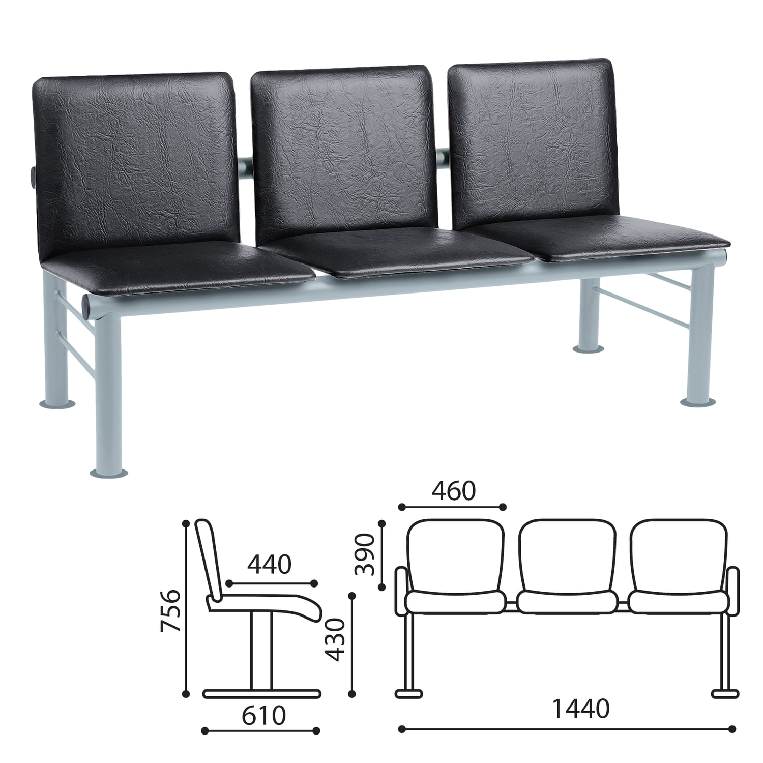 Кресло для посетителей трехсекционное "Терра", серебристый каркас, кожзам черный Код товара: 980558 21 598,29 ₽ Купить Производитель:ТЕРРА Доступный вариант комфортного и презентабельного многоместного кресла. Предназначено для эксплуатации в местах ожидания, приемных и комнат отдыха в офисах, холлах гостиниц, торговых центрах, кинотеатров и т.п. Производство: РоссияСерия: ТерраМатериал обивки: кожзамМатериал сиденья и спинки: фанера, пенополеуретановый настил 25 ммТип рамы: разборная металлическаяДиаметр трубы рамы: 19, 50Высота: 756 ммШирина: 1440 ммГлубина: 610 ммВысота спинки от сиденья: 390 ммШирина сиденья: 460 ммГлубина сиденья: 440 ммВысота от пола до сиденья: 430 ммЦвет обивки: черныйЦвет рамы: серебристыйСоответствует требованиям ГОСТа: ГОСТ 19917-2014Тип поставки: в разобранном видеВес: 24,7 кгОбъём: 0.1736 м3Промежуточная упаковка: 1 штТранспортная упаковка: 1 шт