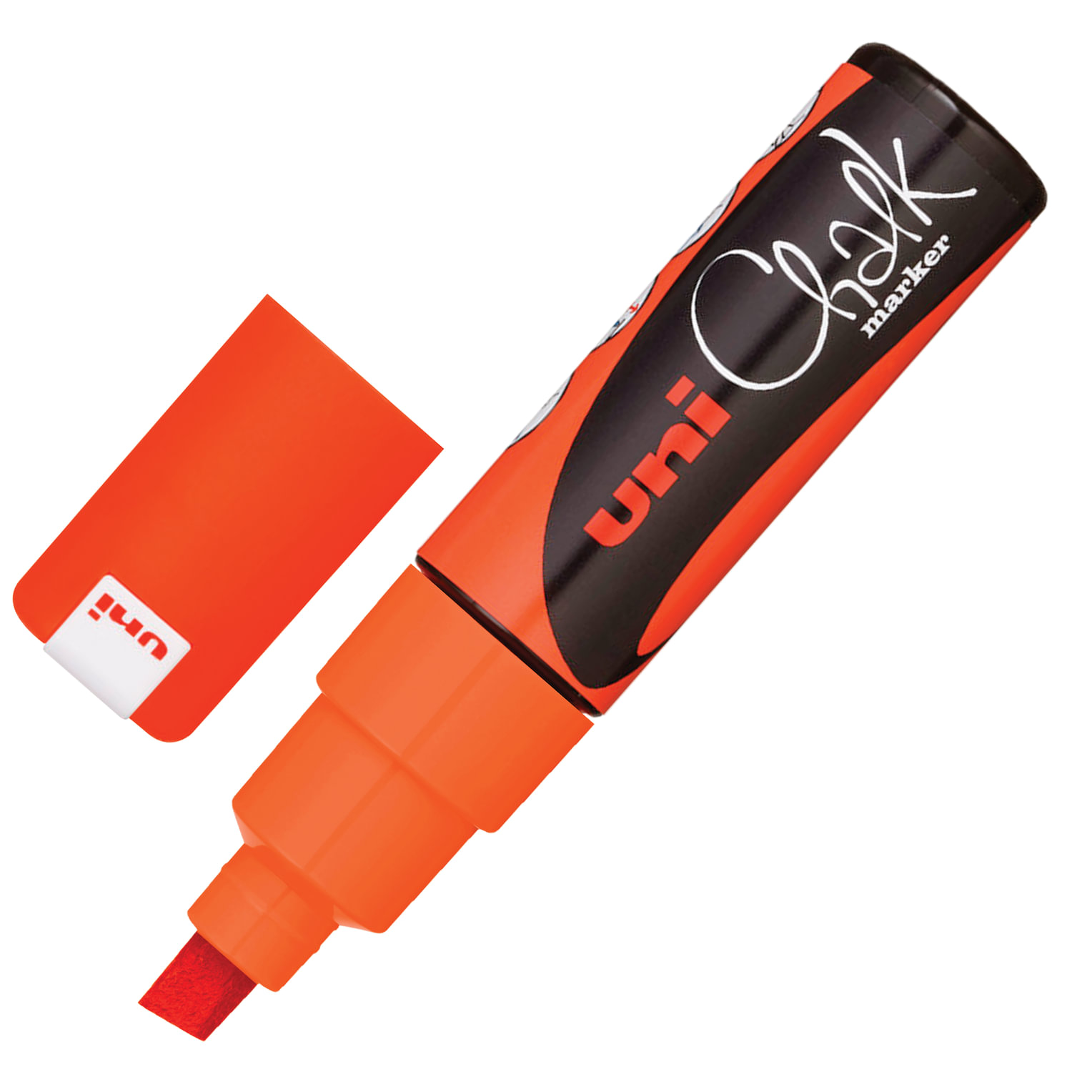 Маркер меловой UNI "Chalk", 8 мм, ОРАНЖЕВЫЙ, влагостираемый, для гладких поверхностей Код товара: 142639 386,53 ₽ Купить Производитель:UNI Основу красящего состава составляет специальный мел и полиакрилаты. Жидкая консистенция позволяет легко наносить меловую краску практически на любые гладкие поверхности. После высыхания легко стирается мокрой тряпкой. Меловой маркер Uni "Chalk" (Юни Чак) с клиновидным наконечником, позволяет создавать линию толщиной до 8,0 мм. Маркер Uni "Chalk" может применяться в различных сферах для всевозможных работ: в школе – для рисования на доске, в барах и кафе – для подписи ценников, создания вывесок и рекламы, на различных производствах – могут быть применены для маркировки деталей, в дизайне – для создания декора и поделок. По своей сути Uni "Chalk" – это тот же разноцветный мелок только в более удобной форме, которая не пачкает руки. Наконечник маркера прочный и износостойкий. Благодаря своей широкой форме подходит для оформительских работ и создания крупных надписей и узоров. Кроме того, надписи, сделанные меловым маркером Uni "Chalk", очень красиво светятся в ультрафиолетовом свете. Это преимущество очень часто используют в ночных клубах для создания надписей о скидках на зеркалах или стеклах. Единственным требованием меловых маркеров является использование на сухих и гладких поверхностях. Способ применения: Перед началом использования мелового маркера Uni "Chalk" нужно хорошо встряхнуть, затем снимите защитный колпачок и можно приступать к работе. Если кончик маркера сухой, то необходимо взять черновик, перевернуть маркер наконечником вниз и в вертикальном положении несколько раз нажать на наконечник, утопив его в корпус маркера. Таким образом мы подкачиваем красящий состав. Как только наконечник пропитается, можно приступать к использованию мелового маркера.Производство: ЯпонияЦвет чернил: оранжевыйСерия: Uni Chalk 8MКоличество в комплекте: 1 шт.Форма наконечника: скошенныйМинимальная толщина линии письма: 2 ммМаксимальная толщина линии письма: 8 ммСпецэффект чернил: меловыеЧернила светятся в УФ-свете: даПовышенная светостойкость: даНаконечник устойчив к повреждению и истиранию: даТип стирания: смываемыйФорма корпуса: круглаяДиаметр корпуса: 22 ммМатериал корпуса: пластикОснова чернил: меловаяУпаковка: термоусадкаСрок годности: 48 месВес: 40 грРазмер упаковки: 2.5 × 12.1 × 2.5 смОбъём: 0.0001 м3Промежуточная упаковка: 6 штТранспортная упаковка: 288 штШтрих-код: 4902778140116 Сертификат-1.jpg Сертификат-2.jpg Сертификат-3.jpg