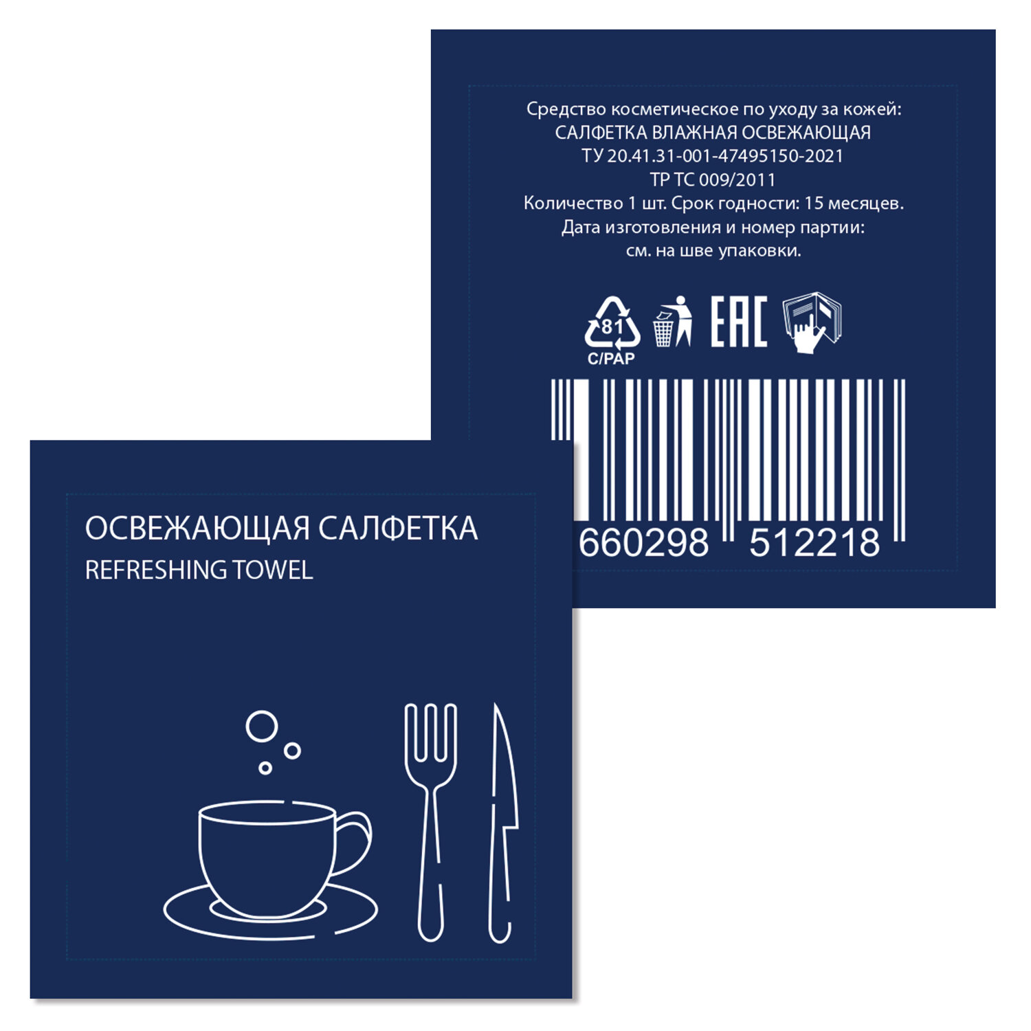 Салфетка влажная очищающая HoReCa 13,5х15 см, в индивидуальной упаковке, "Лимон", ВИП СЕРВИС, 117523 Код товара: 117523 1,66 ₽ Купить Производитель:ВИП сервис Освежающая влажная салфетка ВИП СЕРВИС для рук в индивидуальной упаковке удобна для протирания рук или поверхностей в местах общего пользования. Формат упаковки также является отличным решением для кафе, ресторанов, кейтеринговых компаний. Размер упаковки – 60х60 мм. Материал упаковки – триплекс. Материал салфетки – нетканый материал. Размер – 150х135 мм. Пропитка – универсальная, запах – лимон.Производство: РоссияТип товара: салфеткиВид: универсальныеВлажные: даАромат: ЛимонКоличество в комплекте: 1 шт.Количество слоев: 1Без содержания спирта: даСерия: ВИПЭффект от использования: очищениеСырье: нетканый материалДлина салфетки: 150 ммШирина салфетки: 135 ммЦвет: белыйУпаковка: сашеСрок годности: 15 месВес: 3 грРазмер упаковки: 0.5 × 5.9 × 5.6 смПромежуточная упаковка: 1000 штТранспортная упаковка: 1000 штШтрих-код: 4660298512218 Сертификат-1.jpg Сертификат-2.jpg Сертификат-3.jpg