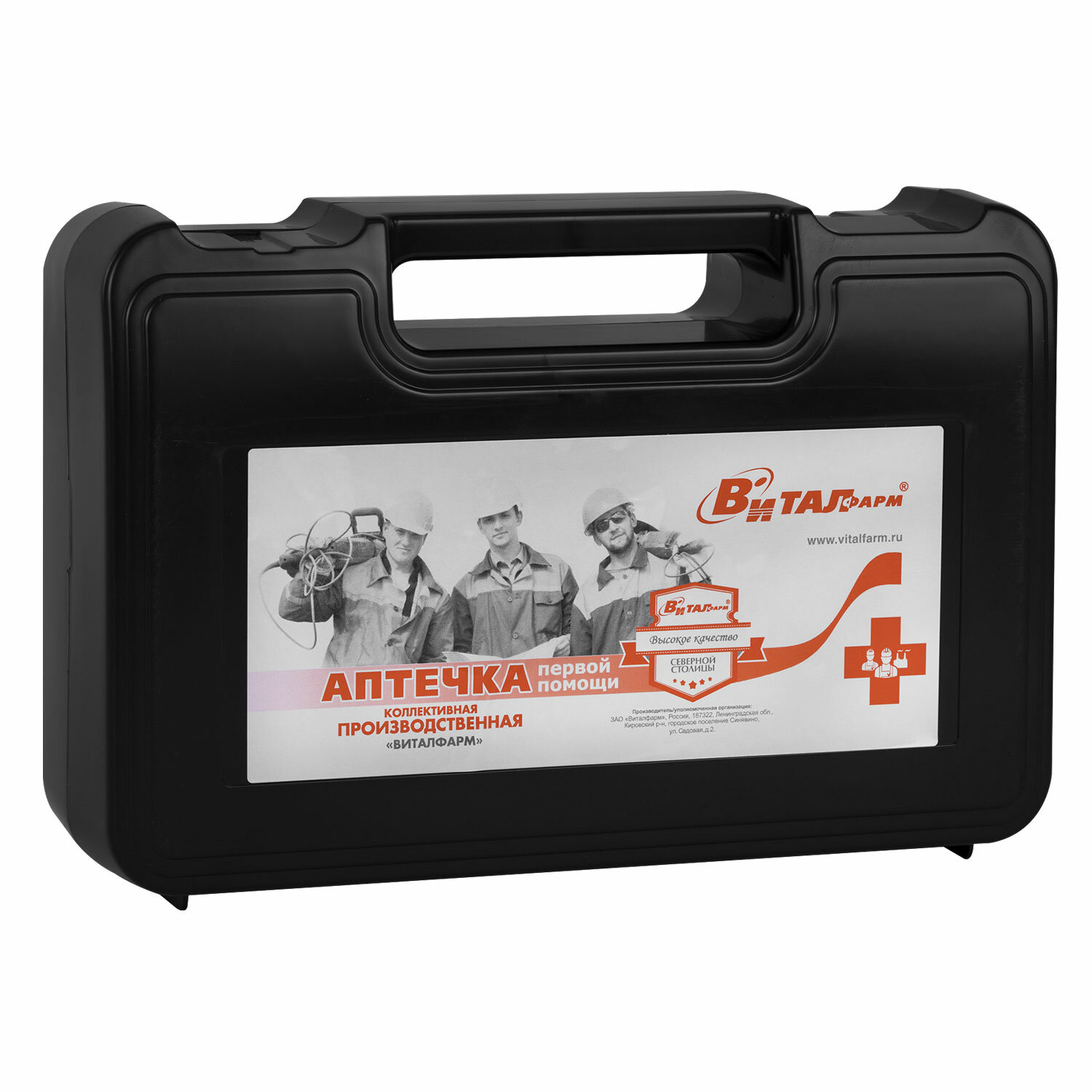 Аптечка первой помощи производственная ВИТАЛФАРМ, до 30 человек, футляр полистирол Код товара: 631325 1 549,89 ₽ Купить Производитель:ВИТАЛФАРМ Аптечка первой помощи производственная ВИТАЛФАР предназначена для оказания первой помощи в учреждениях, на предприятиях и производствах с численностью коллектива до 30 человек. Состав: 1. Ацетилсалициловая кислота таблетки № 10 - 2 упаковки. 2. Бинт нестерильный 5х5 см - 1 штука. 3. Бинт нестерильный не менее 5х7 см - 2 штуки. 4. Бинт стерильный не менее 5х7 см - 2 штуки. 5. Бинт эластичный трубчатый нестерильный - 1 штука. 6. Валидол таблетки 60мг не менее № 6 - 2 упаковки. 7. Вата не менее 25 г хирургическая медицинская нестерильная - штука. 8. Устройство для проведения искусственного дыхания «рот-устройство-рот» - 1 штука. 9. Дротаверин таблетки 40 мг не менее № 20 - 1 упаковка. 10. Жгут кровоостанавливающий - 1 штука. 11. Корвалол капли для приема внутрь - 1 флакон. 12. Лейкопластырь рулонный не менее 1х250 см - 1 штука. 13. Лейкопластырь бактерицидный 1,9х7,2 см - 10 штук. 14. Нитроглицерин капсулы № 20 (2) или таблетки 0,5 мг № 40 - 1 упаковка. 15. Ножницы - 1 штука. 16. Пакет гипотермический охлаждающий - 2 штуки. 17. Перекись водорода 3% - 1 флакон. 18. Средство для стимуляции дыхания - 1 флакон/штука. 19. Средство дезинфицирующее перевязочное стерильное - 1 штука. 20. Салфетка антисептическая из нетканого материала спиртовая (не менее 30 мм х 60 мм) - 5 штук. 21. Средство кровоостанавливающее перевязочное стерильное - 1 штука. 22. Синтомицина линимент 10% - 1 штука. 23. Стаканчик для приема лекарств, 30 мл - 1 штука. 24. Сульфацил-натрия 20% раствор не менее 1,5 мл (2) - 1 флакон. 25. Уголь активированный таблетки № 10 - 2 упаковки. 26. Цитрамон П таблетки не менее № 6 - 2 упаковки. 27. Футляр для аптечки - 1 штука.Производство: РоссияТип: коллективнаяНаполнение: ТУ 9398-038-85535470-2016Форма выпуска: пластиковый футлярСрок годности: 18 мес.Длина: 18 смШирина: 8 смГлубина: 27 смСрок годности: 18 месВес: 905 грРазмер упаковки: 8 × 27.8 × 18.6 смОбъём: 0.0049 м3Промежуточная упаковка: 14 штТранспортная упаковка: 14 штШтрих-код: 4607039777352 Сертификат-1.jpg Сертификат-2.jpg