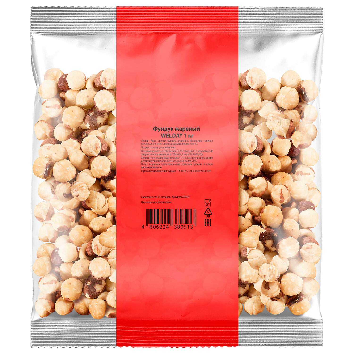 Фундук жареный WELDAY (ВЭЛДЭЙ) 1 кг Код товара: 622485 1 869 ₽ Купить Производитель:WELDAY Орехи и сухофрукты являются богатым источником энергии для нашего организма, содержат много полезных питательных веществ и витаминов. Фундук жареный WELDAY можно использовать как полезный и вкусный перекус в течение рабочего дня. Фундук является популярным и распространенным видом орехов. Содержит витамины группы B, витамины A, C, E, K, PP, ниацин и микро- и макроэлементы, железо, йод, медь, марганец, цинк, фтор, селен, калий, магний, кальций, натрий, серу, фосфор. В его состав входят аминокислоты и жирные кислоты, в том числе и омега-3. Продукт готов к употреблению. Состав: ядра орехов фундука очищенные жареные. Вес – 1 кг. Упаковка: прозрачный пакет из полипропилена. Условия хранения: при температуре не более +25 °C и относительной влажности не более 75%. Срок годности – 12 месяцев.Производство: РоссияТип продукта: фундукВес нетто: 1000 гОсобенности: жареныеВкус: фундукТип упаковки: пакетСрок годности: 12 мес.Фирма-производитель: АЗИЯ-ФУДСрок годности: 12 месВес: 1,05 кгРазмер упаковки: 5 × 20.4 × 19.1 смОбъём: 0.0037 м3Промежуточная упаковка: 6 штТранспортная упаковка: 6 штШтрих-код: 4606224380513 Сертификат-1.jpg Сертификат-2.jpg Сертификат-3.jpg