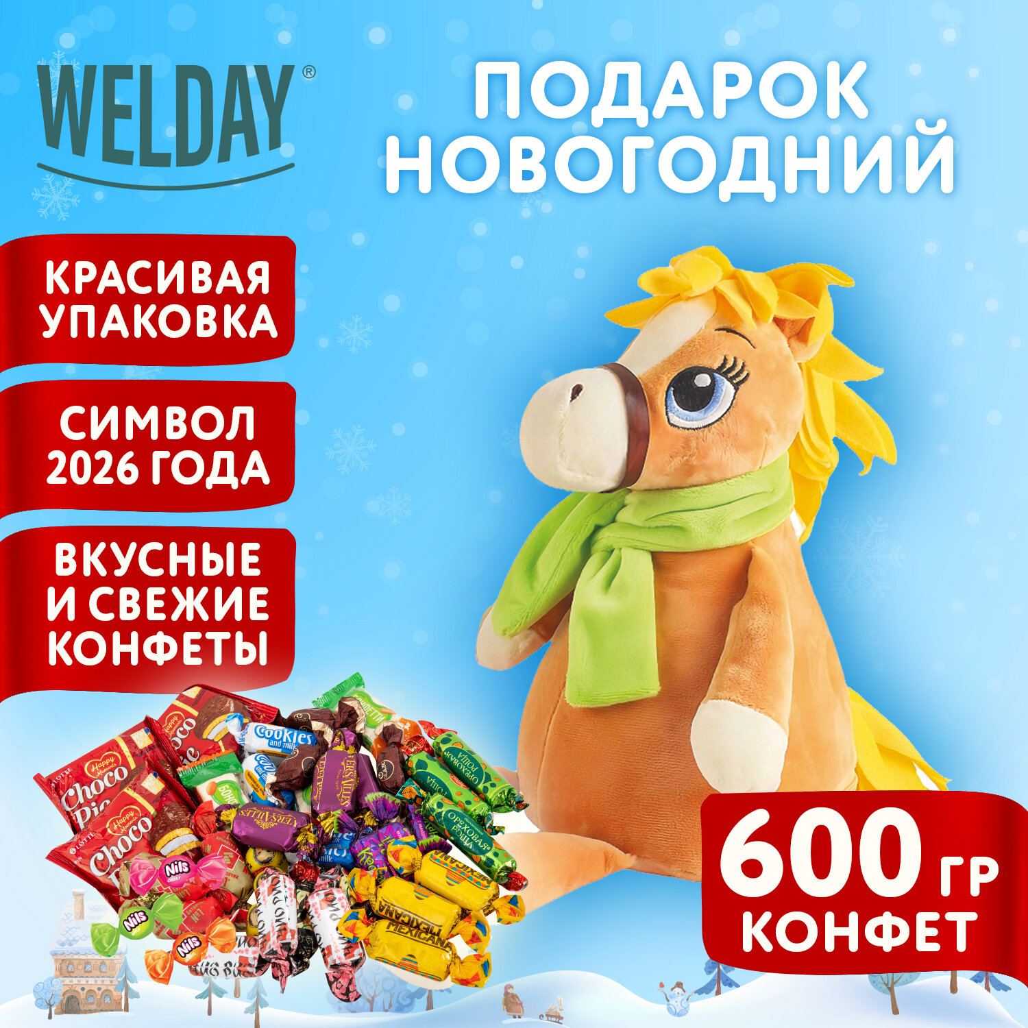 Подарок новогодний БЕЛОКУРЫЙ ЯША "Мягкая игрушка-символ 2026 года", НАБОР конфет 600 г, WELDAY (ВЭЛДЭЙ) Ликвидация Код товара: 881183 745,58 ₽ Купить Производитель:WELDAY Новый год – время волшебства. Подарок БЕЛОКУРЫЙ ЯША создан, чтобы добавить еще больше радости и ярких моментов в этот праздничный сезон! В наборе – 600 г популярных кондитерских изделий, упакованных в мягкую игрушку СИМВОЛ 2026 ГОДА! • Состав: - Батончики шоколадные ЧИО РИО – 3 шт., - Карамель ЯШКИНО "Нильс" – 3 шт., - Конфеты ЯШКИНО "Крокант" – 3 шт., - Конфеты ВEPSAЛЬ – 3 шт., - Конфеты ГЛЭЙС – 3 шт., - Батончики COOKIES AND MILK – 3 шт., - Конфеты БОНФЕТТИ – 3 шт., - Конфеты МЕКСИКАНКА – 3 шт., - Конфеты РОТ ФРОНТ "Батончики" – 3 шт., - Конфеты КРАСНЫЙ ОКТЯБРЬ "Аленка" – 3 шт., - Печенье LOTTE "Choco Pie" – 3 шт., - Батончики РОТ ФРОНТ "Ореховая роща" – 3 шт., - Конфеты FUROR – 3 шт., - Конфеты КРАСНЫЙ ОКТЯБРЬ "Маска" – 3 шт.Производство: РоссияТип товара: новогодний подарокУпаковка: мягкая игрушкаМасса нетто: 600 гКоличество конфет в наборе: 42 шт.Дизайн: БЕЛОКУРЫЙ ЯШАПроизводитель: СамсонСрок годности: 6 мес.Высота: 26 смШирина: 16 смГлубина: 16 смСрок годности: 6 месВес: 787 грРазмер упаковки: 11.3 × 25.3 × 20.1 смОбъём: 0.0052 м3Промежуточная упаковка: 14 штТранспортная упаковка: 14 штШтрих-код: 4606224531793 Файлы Сертификат-1.jpg Сертификат-2.jpg Сертификат-3.jpg Сертификат-4.jpg