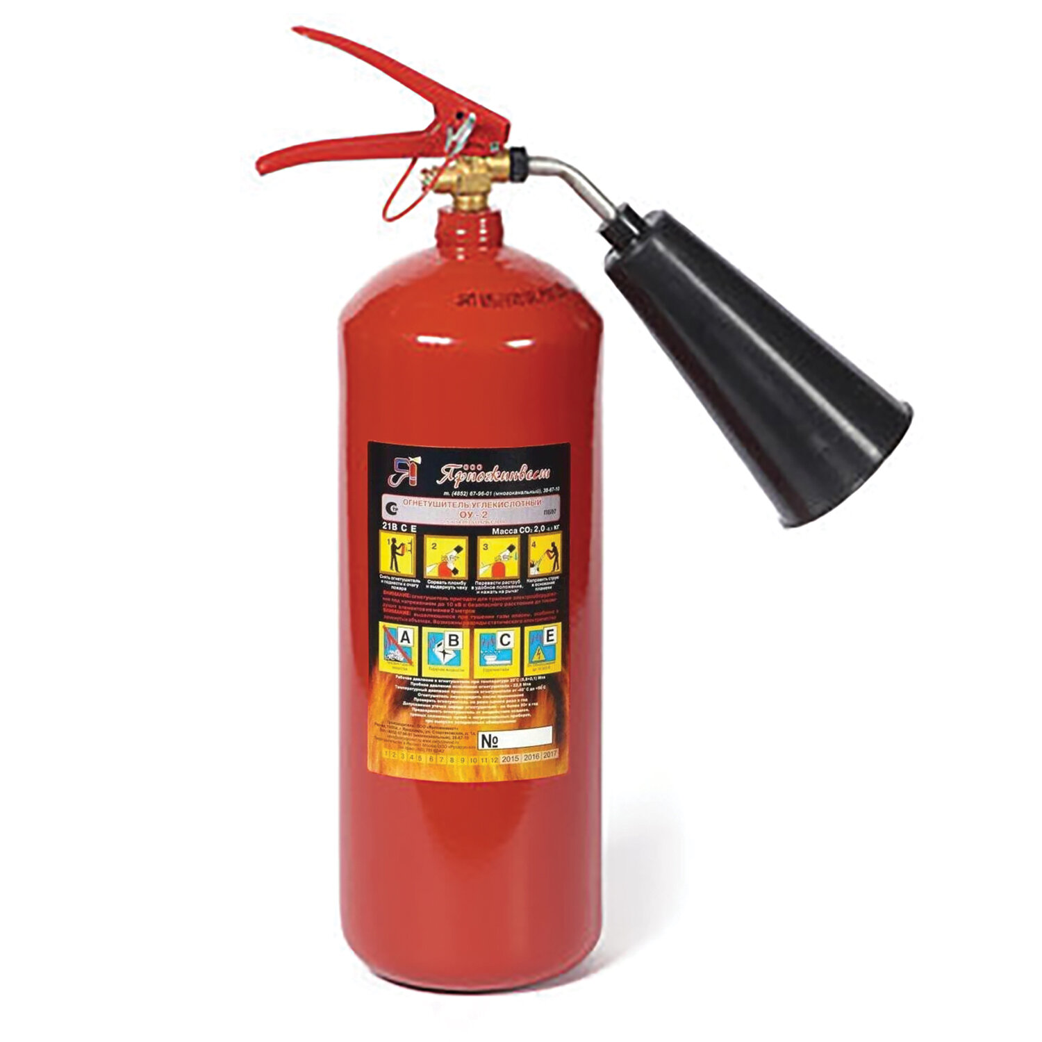 2. После использования огнетушителя в закрытом помещении необходимо проветривание. В противном случае возможно отравление парами углекислоты.
