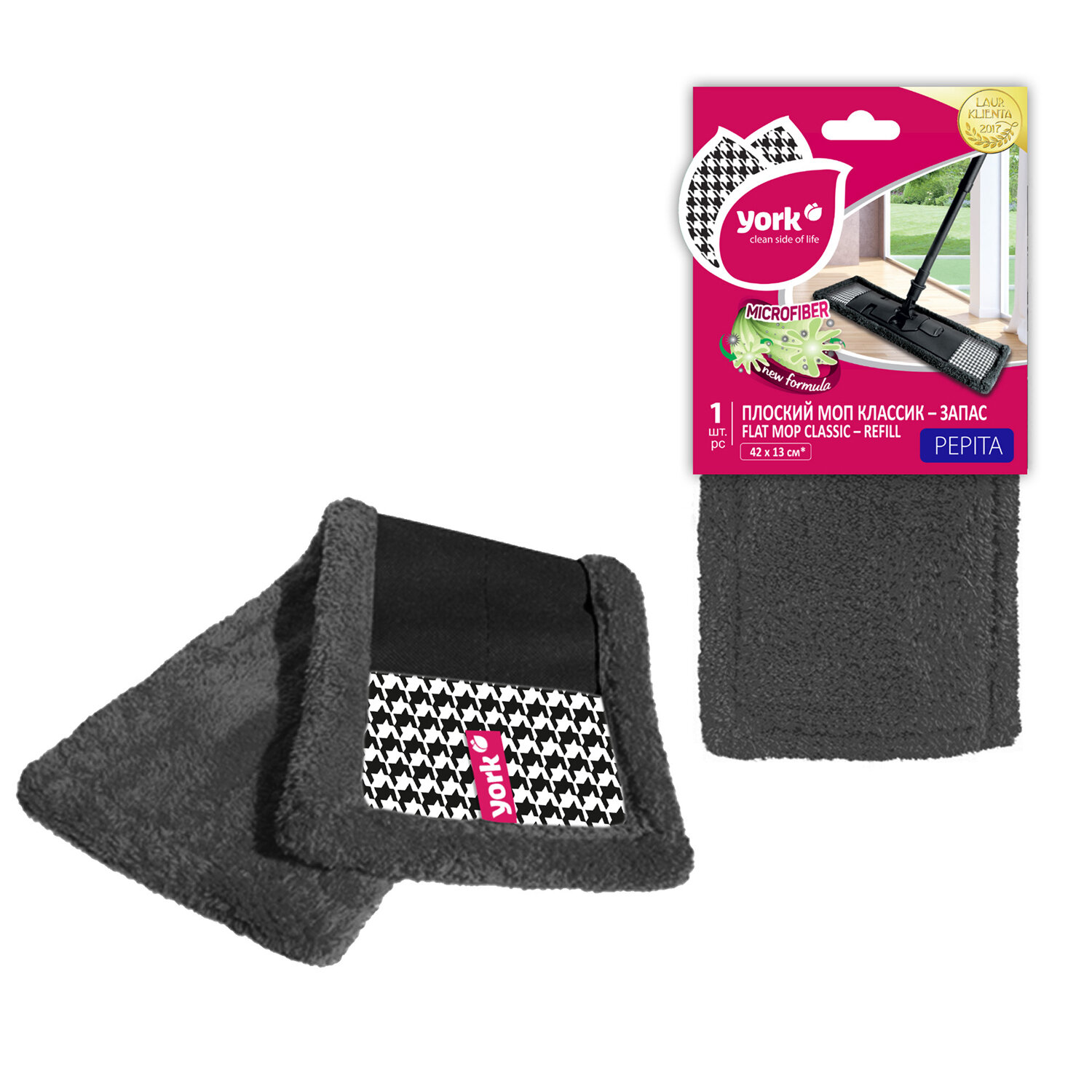 Насадка МОП плоская 42х13см, полиэстер, "Pepita", YORK, 0 Код товара: 703763 189 ₽ Купить Производитель:YORK Насадка для плоской швабры 42х13см, черная ПЕПИТА от YORK изготовлена из качественной микрофибры, подходит ко всем швабрам серии ПЕПИТА YORK. Можно стирать в машинке. Насадка из микрофибры в стильном дизайне Pepita. Микроволокна удаляют сильные загрязнения без использования моющих средств. Не оставляет разводов. Подходит для мытья и полировки всех видов полов. Легко одевается и снимается со швабры. Стирка в стиральной машине при температуре до 40 град. Состав: 100% полиэстер. Размеры насадки: 42 х 13 см. Размеры платформы: 39 х 9 см.Производство: КитайТип насадки: плоская для складного держателяМатериал: полиэстерКоличество в комплекте: 1 шт.Крепление насадки: карманы (ТИП К)Длина: 42 смШирина: 13 смДлина ворса: 1 смЦвет: черныйВес: 70 гРазмер упаковки: 24.5 × 14 × 1 смОбъём: 0.0003 м3Промежуточная упаковка: 48 штТранспортная упаковка: 48 штШтрих-код: 5903355143666 Файлы