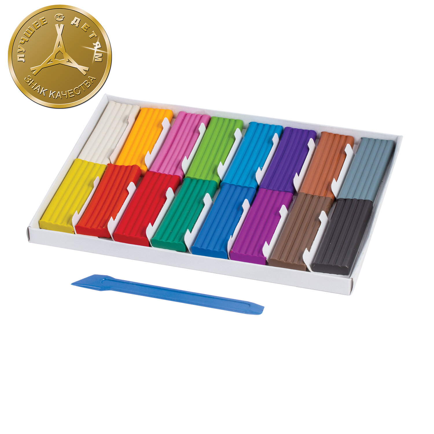 Масса набора - 240 г. Со стеком. В набор входят 16 брусков по 15г разных цветов: белый, оранжевый, розовый, салатовый, голубой, сливовый, коричневый, серый, желтый, красный, малиновый, зеленый, синий, фиолетовый, черный, темно-коричневый. Пластилин ЮНЛАНДИЯ высшего качества имеет прекрасную пластичность, мягкость. Легко принимает нужную форму, не оставляет цветных следов на руках. Не токсичен, безопасен для детей. Способствует развитию цветового зрения и пространственного мышления.