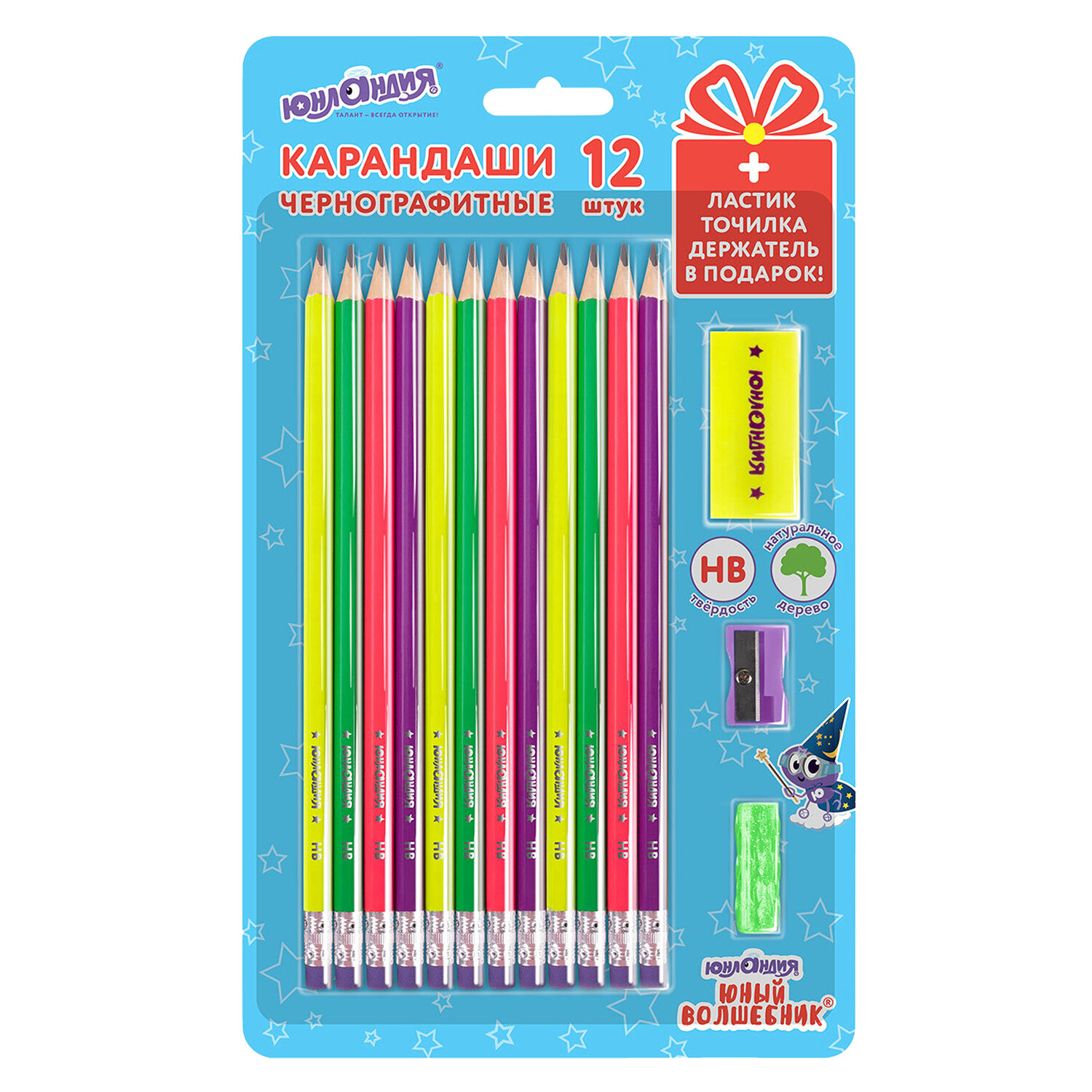 Набор ЮНЛАНДИЯ "Юный волшебник", 12 карандашей чернографитных + точилка + ластик + держатель Код товара: 181785 211,71 ₽ Купить Производитель:ЮНЛАНДИЯ Набор ЮНЛАНДИЯ "Юный волшебник" состоит из 12 чернографитных карандашей, точилки и мягкого ластика. Кроме того, в комплекте забавный держатель для карандаша, который облегчает нагрузку на кисть при письме. Карандаши легко затачиваются, максимально устойчивы к повреждениям. Изготовлены из дерева высокого качества. Имеют шестигранный корпус, оснащены ластиком. Карандаши длиной 190 мм обладают средней степенью твердости – HB. Корпус точилки выполнен из пластика синего цвета. Ребристые края корпуса позволяют удобно держать ее в руке. Острое стальное лезвие обеспечивает быструю и легкую заточку. Съемный эргономичный держатель-тренажер выполнен из термопластичной резины. Удобные углубления для пальцев позволяют правильно держать карандаш или ручку в руке и облегчают нагрузку на кисть при письме. Мягкий ластик из термопластичной резины обеспечит лёгкое и чистое стирание без повреждения поверхности бумаги и без образования бумажной пыли. Набор упакован в блистер с подвесом.Производство: КитайКол-во предметов: 15Серия: Школьный наборСостав набора: стирательная резинка, точилка, чернографитный карандаш, эргономичный держательУпаковка: блистер с европодвесомВес: 137 грРазмер упаковки: 1.4 × 24.9 × 15.6 смОбъём: 0.0006 м3Промежуточная упаковка: 12 штТранспортная упаковка: 144 штШтрих-код: 4606224304830 Сертификат-1.jpg Сертификат-2.jpg