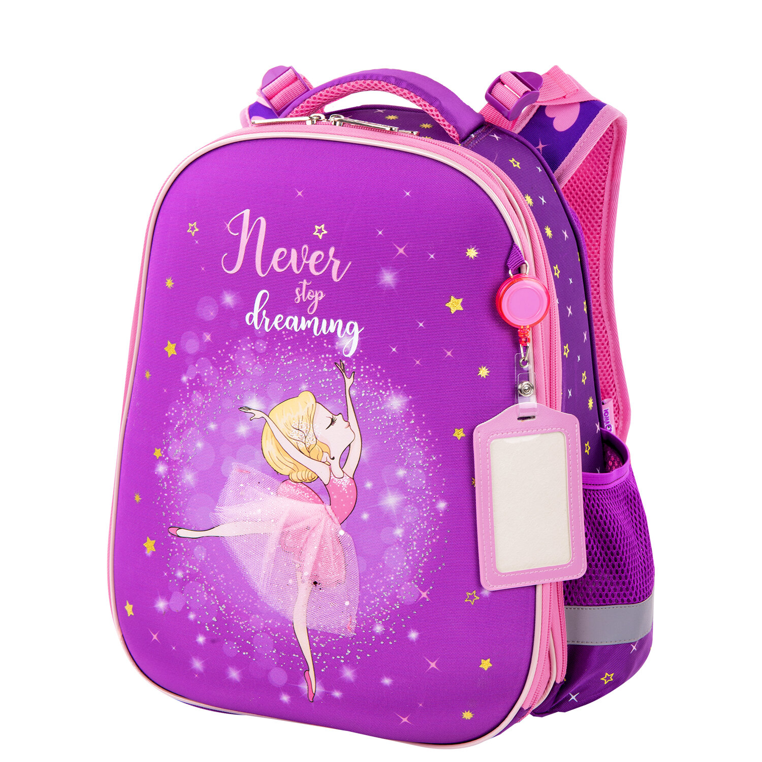 В основном отделении ранца можно легко и быстро разместить учебники и тетради между плотными перегородками. Внутри фронтального отделения находится органайзер для канцтоваров, именная карточка, карман для телефона, карабин для ключей и большое отделение из сетки. Такая организация пространства поможет держать принадлежности в сохранности и приучить ребенка к порядку. Ранец широко раскрывается, повышая удобство использования, а за счёт боковых перегородок содержимое не выскользнет из ранца.