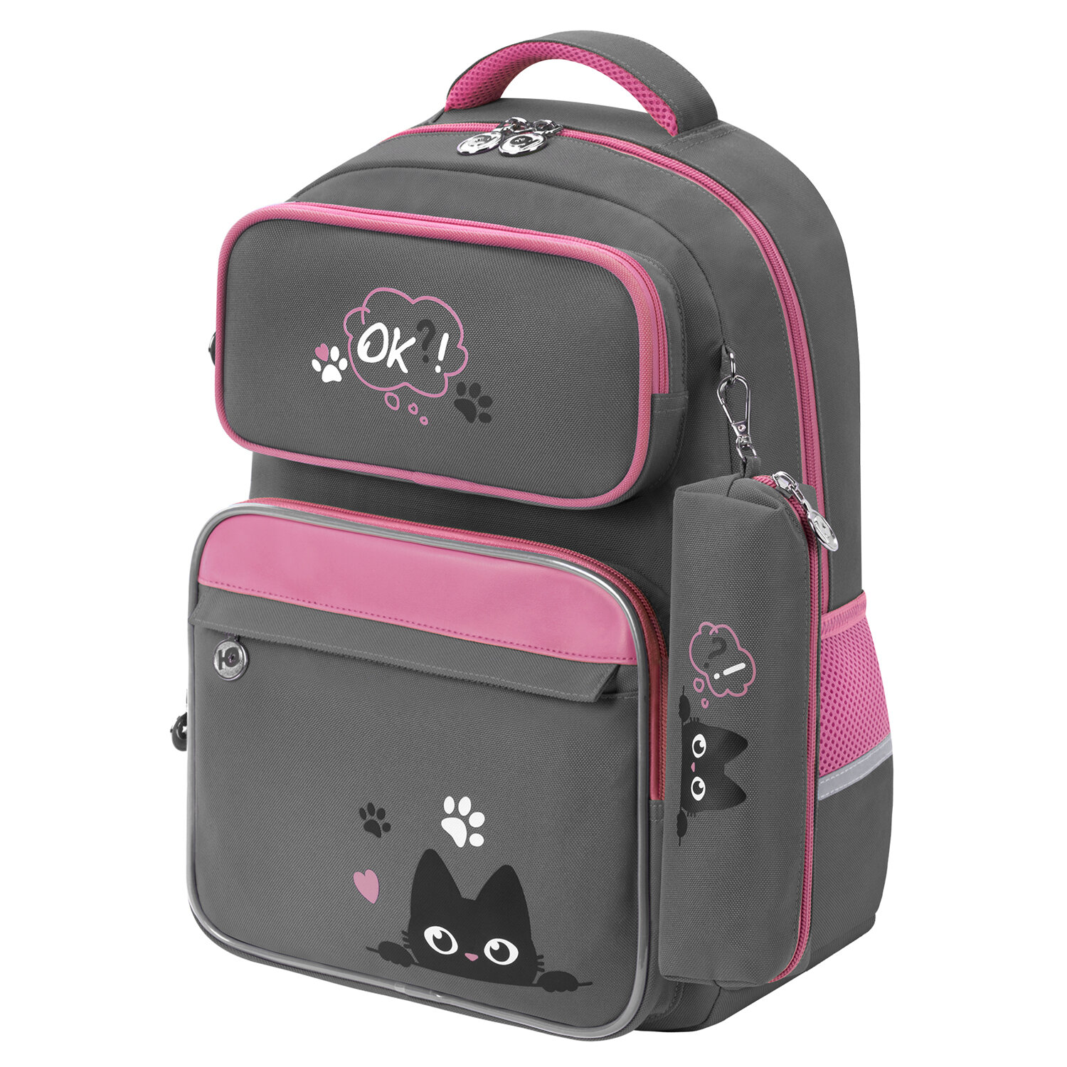 Рюкзак ЮНЛАНДИЯ COMPLETE с пеналом в комплекте, эрго-спинка, "Wonder cat", 42х29х14 см Код товара: 274431 2 807,02 ₽ Купить Производитель:ЮНЛАНДИЯ Серия рюкзаков COMPLETE предназначена для учеников 7-12 лет. Рюкзаки этой серии не только удобные, но и практичные, имеют легкую, прочную конструкцию с анатомической спинкой. Бренд ЮНЛАНДИЯ гарантирует высокое качество материалов! Рюкзак с формоустойчивой вентилируемой спинкой имеет 1 вместительное отделение на молнии и 5 карманов. Оптимальный размер рюкзака позволяет вместить все необходимые школьные принадлежности. Мягкие широкие регулируемые лямки способствуют оптимальному распределению веса. Рюкзак снабжен усиленной ручкой из ткани и петелькой для подвешивания на крючок, а также фиксатором для тетрадей. Светоотражающие элементы с четырех сторон обеспечивают безопасность в темное время суток. В основном отделении рюкзака имеется жесткое откидное дно на липучке, которое необходимо для усиления каркаса рюкзака. Пенал – в подарок! Рюкзак упакован в плотный ПЭТ-пакет с замком Zip Lock, что позволит сохранить качество и товарный вид изделия при хранении и транспортировке.Производство: КитайПол ребенка: для девочекСерия: COMPLETEДизайн: Wonder catВозрастная группа: 7-12 летОбъем: 18 лТип спинки: анатомическая, вентилируемая, формоустойчиваяКоличество отделений: 1Перегородка в основном отделении: даКоличество карманов: 5 шт.Фронтальный карман: даБоковые карманы: даСветоотражающие элементы: даНаличие ручки для переноса: даРегулируемые лямки: даВентилируемые лямки: даМатериал спинки: спонжевые панелиМатериал дна: плотная тканьЦвет: серый/розовыйУзор: кошкаВысота: 42 смШирина: 29 смГлубина: 14 смДлина лямок: 73 смВес: 0.54 кгРазмер упаковки: 7 × 42.9 × 34.7 смОбъём: 0.0106 м3Промежуточная упаковка: 5 штТранспортная упаковка: 10 штШтрих-код: 4606224543321 Файлы Сертификат-1.jpg