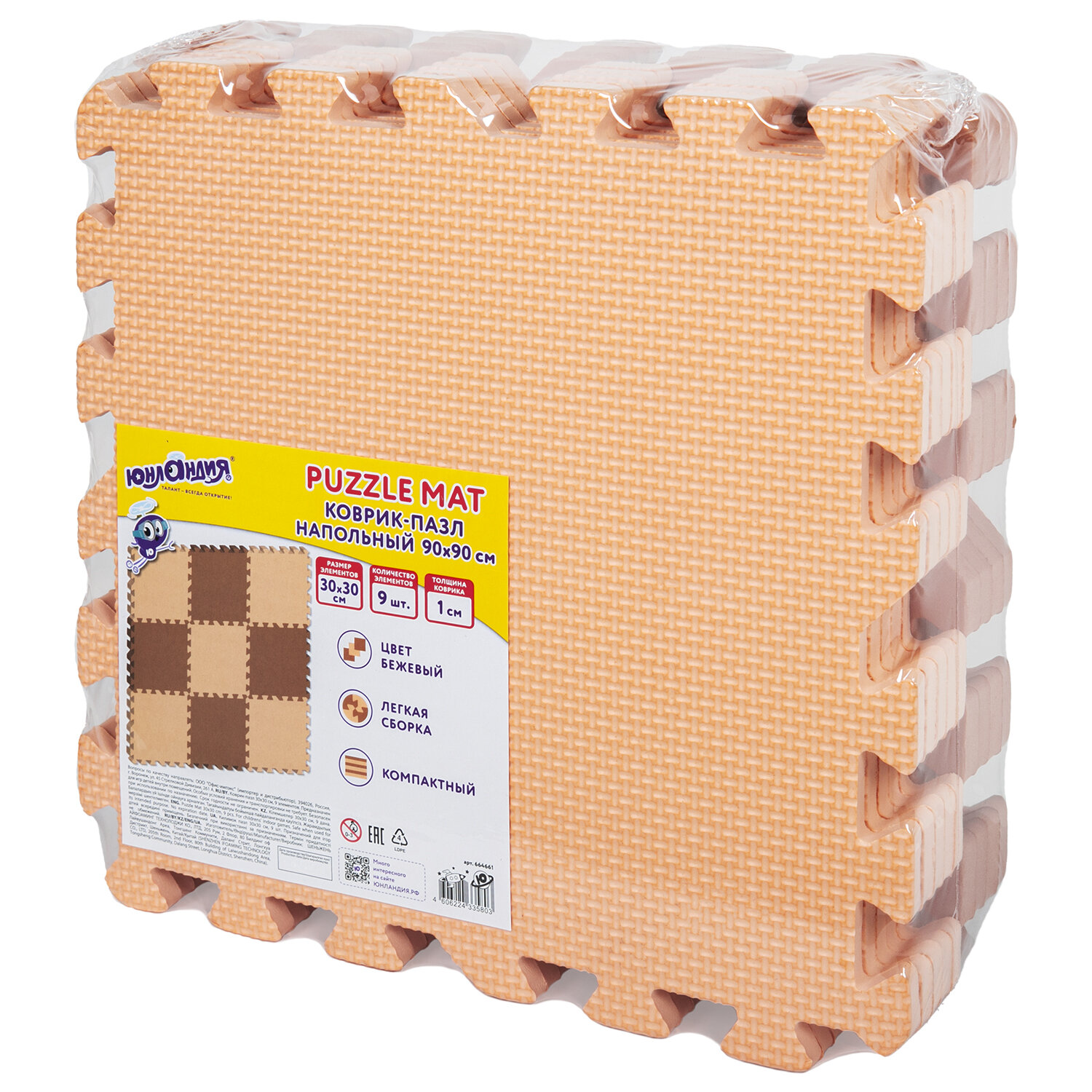 Коврик-пазл напольный 0,9х0,9 м, мягкий, бежевый, 9 элементов 30х30 см, толщина 1 см, ЮНЛАНДИЯ Код товара: 664661 669,24 ₽ Купить Производитель:ЮНЛАНДИЯ Коврики-пазлы ЮНЛАНДИЯ – мягкие коврики, обладающие теплоизоляционными и шумоизоляционными свойствами, изготовленные из безопасного материала. Легко собираются и разбираются, удобны и компактны в хранении. Коврик-пазл состоит из 9 квадратных элементов размерами 30х30 см. Толщина элементов составляет 1 см. Общая площадь – 90х90 см. Коврик включает в себя элементы двух оттенков бежевого цвета. Коврик обладает антискользящим эффектом, смягчает удары при падении. Играть на коврике удобно и тепло. Квадратные элементы легко разбираются и собираются обратно, позволяют строить различные сооружения, способствуя развитию моторики и пространственного мышления. Коврик-пазл изготовлен из безопасного, мягкого и легкого материала – этиленвинилацетата (100% ЭВА). После вскрытия упаковки перед первым использованием рекомендуется промыть элементы коврика-пазла теплой водой с мылом и просушить.Производство: КитайВид игрушки: коврик-пазлКоличество в комплекте: 9 шт.Возраст ребенка: от 3 летЦвет: бежевыйСерия: ЦветнойСюжет: БежевыйМатериал: ЭВАДлина: 90 смШирина: 90 смГлубина: 1 смУпаковка: термоусадочная пленкаВес: 551 грРазмер упаковки: 8.7 × 29.7 × 29.9 смОбъём: 0.0092 м3Промежуточная упаковка: 12 штТранспортная упаковка: 12 штШтрих-код: 4606224335803 Сертификат-1.jpg Сертификат-2.jpg Сертификат-3.jpg