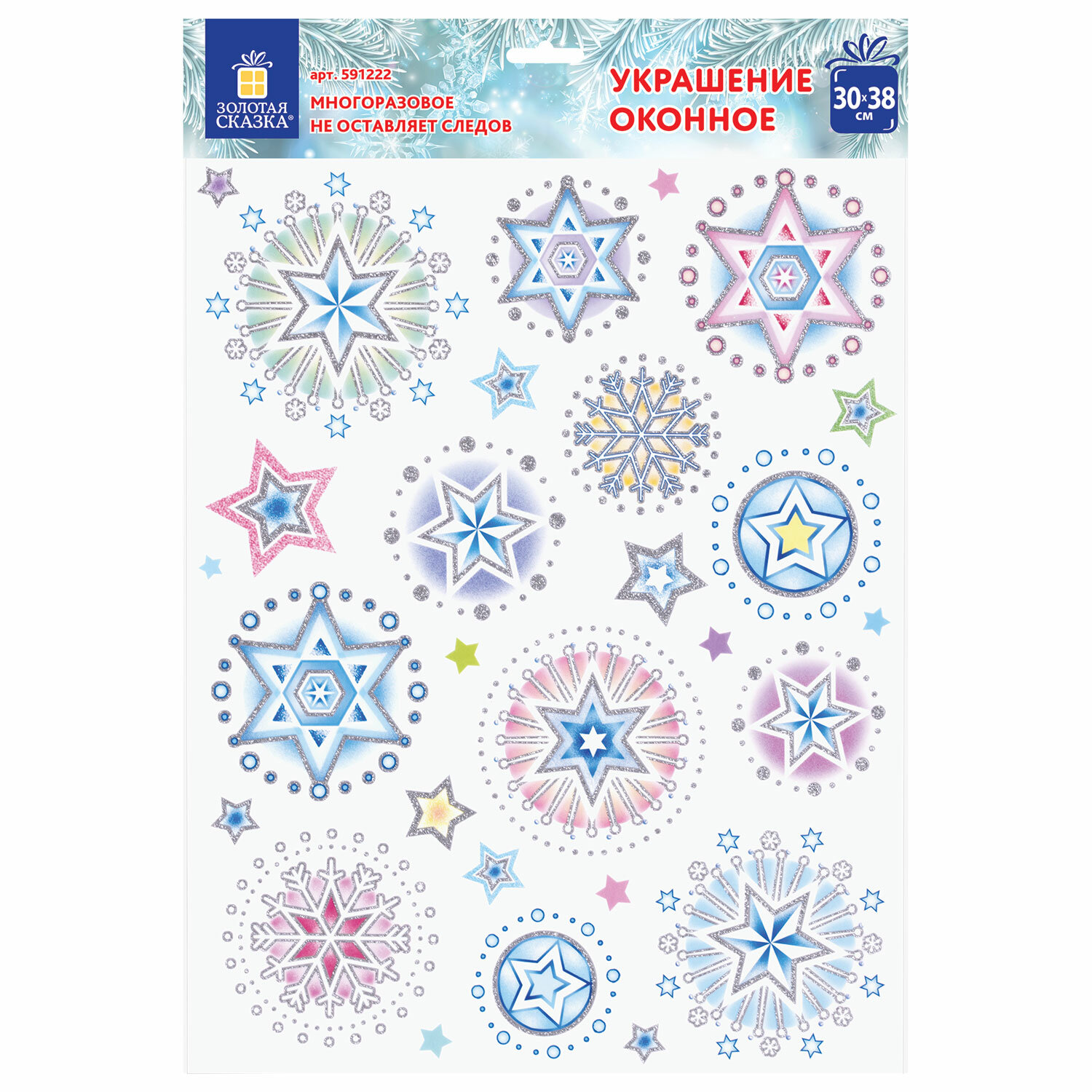 Украшение для окон и стекла ЗОЛОТАЯ СКАЗКА "Цветные снежинки 4", 30х38 см, ПВХ Ликвидация Код товара: 591222 80,4 ₽ Купить Производитель:ЗОЛОТАЯ СКАЗКА Украшение для окон и стекла ЗОЛОТАЯ СКАЗКА - это отличный и недорогой способ украсить домашний или офисный интерьер к новогодним праздникам. Такой декор наполнит комнату волшебной атмосферой и подарит праздничное настроение. Изделие с изображением цветных звезд и снежинок представляет собой наклейку на окно/стекло, изготовленную из поливинилхлорида (ПВХ). Наклейка размером 30x38 см декорирована серебристым глиттером. Украшение предназначено для декорирования окон, зеркал, стекол и других ламинированных глянцевых поверхностей. Не оставляет клеевых следов и предназначено для многократного использования. Крепится к поверхности посредством статического эффекта. Украшение на белой картонной подложке упаковано в прозрачный полипропиленовый пакет на картонном подвесе.Производство: Тайвань (Китай)Тип товара: наклейка для оконМатериал: пленка ПВХДлина: 38 смШирина: 30 смЦвет: комбинированныйСпособ крепления: статическийДизайн: Цветные снежинки 4Вес: 70 грРазмер упаковки: 0.1 × 43.9 × 30.6 смОбъём: 0.0002 м3Промежуточная упаковка: 72 штТранспортная упаковка: 216 штШтрих-код: 4606224272306 Файлы Сертификат-1.jpg Сертификат-2.jpg Сертификат-3.jpg Сертификат-4.jpg Сертификат-5.jpg Сертификат-6.jpg Сертификат-7.jpg Сертификат-8.jpg Сертификат-9.jpg Сертификат-10.jpg Сертификат-11.jpg Сертификат-12.jpg Сертификат-13.jpg Сертификат-14.jpg Сертификат-15.jpg Сертификат-16.jpg Сертификат-17.jpg Сертификат-18.jpg Сертификат-19.jpg Сертификат-20.jpg