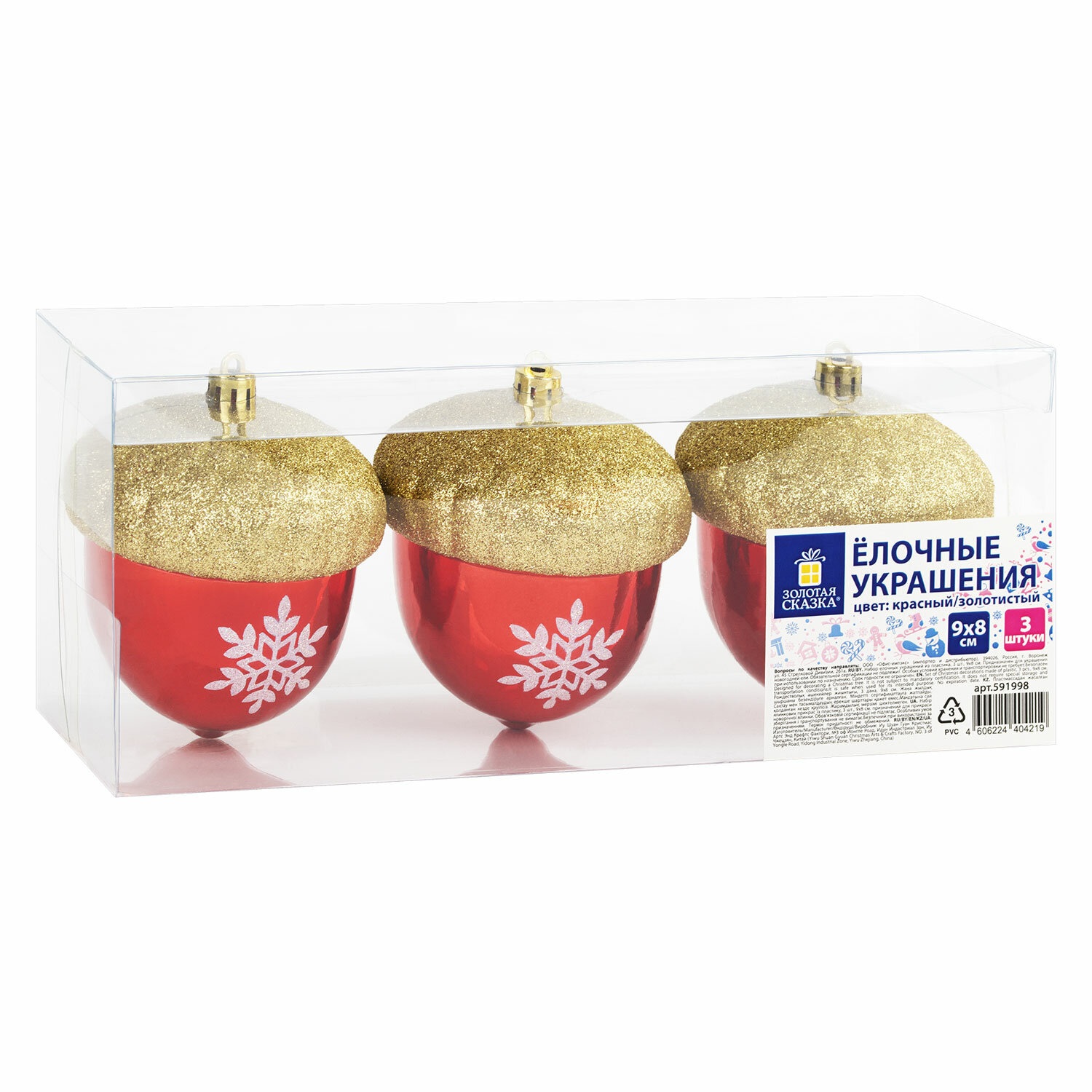 Украшение ёлочное "Желуди" 3 шт., 9х8 см, пластик, цвет: красный / золотистый, ЗОЛОТАЯ СКАЗКА Ликвидация Код товара: 591998 227,7 ₽ Купить Производитель:ЗОЛОТАЯ СКАЗКА Украшение ёлочное "Желуди" – идеальное решение для создания неповторимой атмосферы праздника. Эти красивые украшения придадут вашей ели особое очарование. В комплекте: 3 декоративных украшения в форме жёлудя размером 9x8 см красного и золотистого цветов с глянцевым эффектом и белым рисунком; нитки из полиэстера длиной 30 см для подвешивания шаров золотистого цвета (3 шт.). В верхней части декоративные украшения имеют петлю для подвешивания. Декоративные украшения из комплекта могут использоваться для украшения новогодней ели или в качестве новогоднего сувенира. Упакованы в прозрачную коробку из ПВХ.Производство: КитайТип украшения: украшение подвесноеКоличество в наборе: 3 шт.Материал: пластикВысота: 9 смШирина: 8 смЦвет: красный/золотойСерия: ЖёлудиУпаковка: ПВХ-коробкаВес: 108 грРазмер упаковки: 8.2 × 24.1 × 9.9 смОбъём: 0.0023 м3Промежуточная упаковка: 32 штТранспортная упаковка: 32 штШтрих-код: 4606224404219 Сертификат-1.jpg Сертификат-2.jpg