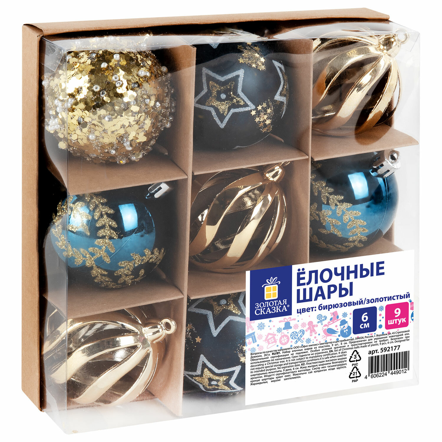 Шары ёлочные 9 шт., 6 см, "Polaris", пластик, бирюзовый/золото, ЗОЛОТАЯ СКАЗКА Код товара: 592177 452,36 ₽ Купить Производитель:ЗОЛОТАЯ СКАЗКА Ёлочные шары ЗОЛОТАЯ СКАЗКА - непременный атрибут Нового года. Они будут отлично смотреться как на зеленой, так и на белой хвое ели. Насыщенные цвета в сочетании с отделкой разной фактуры создадут атмосферу праздника и волшебства. В наборе: 2 шара бирюзового цвета диаметром 6 см с золотистым рисунком с глянцевым эффектом, 2 шара золотистого цвета диаметром 6 см с бисером с глянцевым эффектом, 2 шара синего цвета диаметром 6 см с золотистым рисунком с матовым полупрозрачным эффектом, 3 шара золотистого цвета диаметром 6 см с S-образными выемками с глянцевым эффектом, а также 9 нитей из полиэстера золотистого цвета длиной 30 см для подвешивания шаров. Шары имеют петлю для подвешивания в верхней части. Их можно использовать для украшения новогодней ели или в качестве новогоднего сувенира. Набор упакован в картонную коробку с пластиковой крышкой, дополнительно упакован в индивидуальный трехслойный гофрокороб.Производство: КитайКоличество в наборе: 9 шт.Диаметр: 6 смМатериал: пластикЦвет: бирюзовый/золотоОтделка: ассортиНаличие рисунка: даСерия: PolarisВес: 216 грРазмер упаковки: 7.4 × 18.9 × 19.4 смОбъём: 0.0032 м3Промежуточная упаковка: 20 штТранспортная упаковка: 20 штШтрих-код: 4606224449012 Файлы Сертификат-1.jpg Сертификат-2.jpg Сертификат-3.jpg Сертификат-4.jpg Сертификат-5.jpg Сертификат-6.jpg Сертификат-7.jpg Сертификат-8.jpg Сертификат-9.jpg Сертификат-10.jpg Сертификат-11.jpg Сертификат-12.jpg Сертификат-13.jpg Сертификат-14.jpg Сертификат-15.jpg Сертификат-16.jpg Сертификат-17.jpg Сертификат-18.jpg Сертификат-19.jpg Сертификат-20.jpg Сертификат-21.jpg Сертификат-22.jpg Сертификат-23.jpg Сертификат-24.jpg Сертификат-25.jpg Сертификат-26.jpg