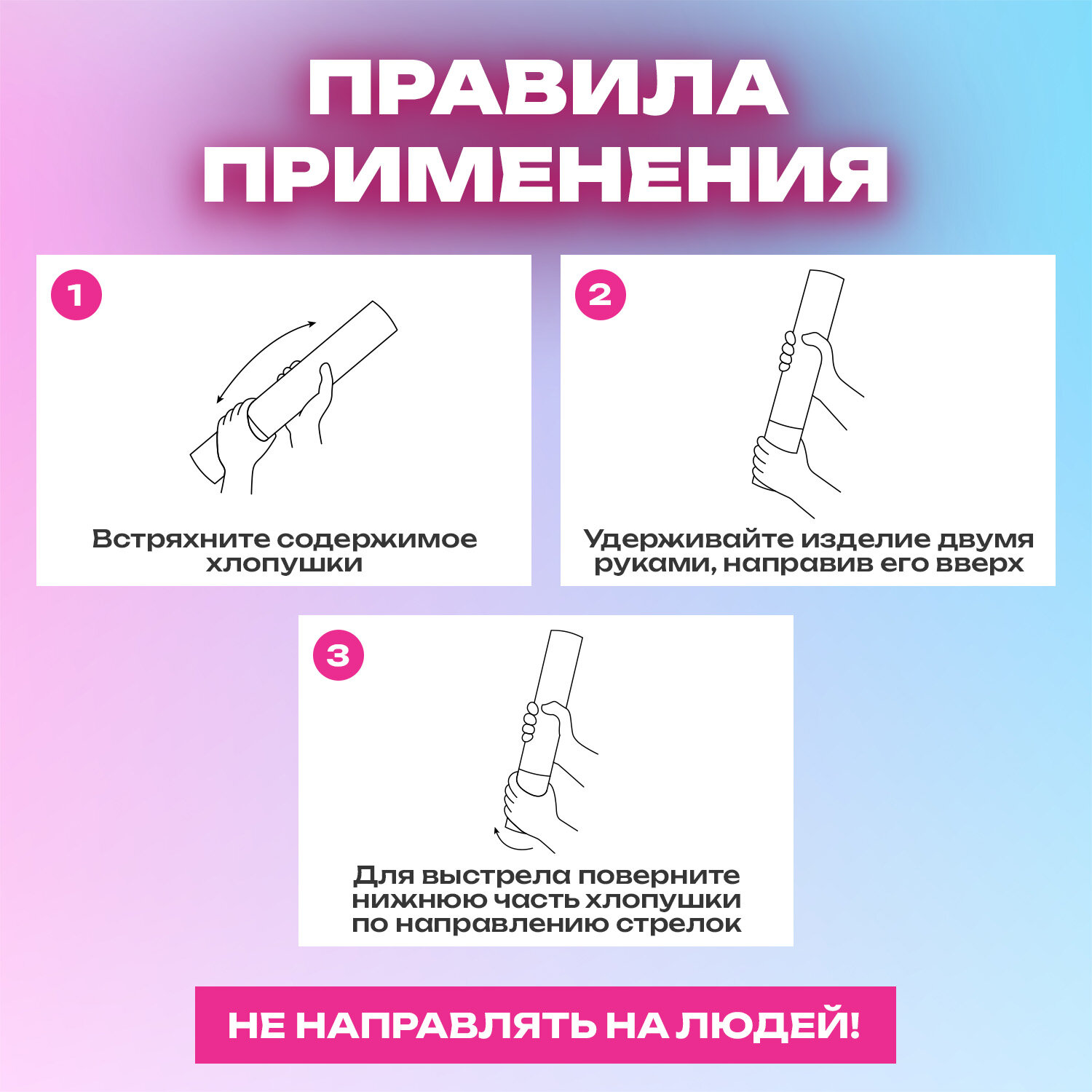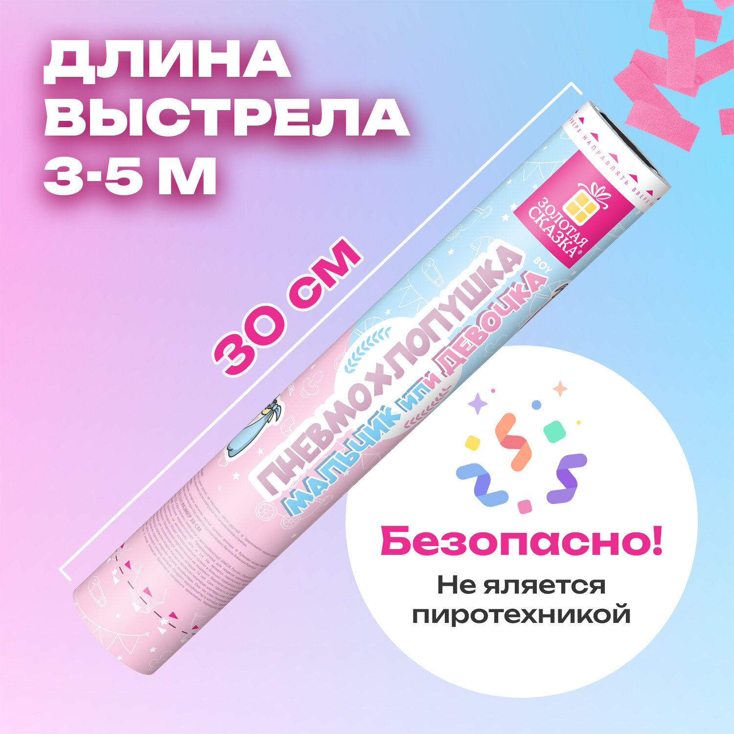 Хлопушка пневматическая 30 см "Мальчик или девочка", бумага, розовый цвет, ЗОЛОТАЯ СКАЗКА Код товара: 592456 165,06 ₽ Купить Производитель:ЗОЛОТАЯ СКАЗКА Пневматическая хлопушка не является пиротехникой и работает на основе энергии сжатого воздуха. Конфетти и серпантин ярких цветов можно использовать в помещении или на улице. Хлопушка подойдет для праздников, концертов, реквизита для фотосессии. Хлопушка высотой 30 см с бумажным наполнителем в виде прямоугольников розового цвета является абсолютно безопасной. Выстрел осуществляется под действием сжатого воздуха. Не является пиротехникой. Средняя дальность выстрела – 3-5 м. Корпус хлопушки состоит из двух частей: пневматического баллона со сжатым воздухом и картонного цилиндра с наполнителем. Рекомендуется использовать хлопушку внутри больших помещений или на улице.Производство: КитайТип: пневматическаяДлина: 30 смКоличество в комплекте: 1 шт.Материал наполнителя: бумагаОсновной наполнитель: прямоугольникиЦвет наполнителя: розовыйВес: 155 грРазмер упаковки: 4.9 × 31.2 × 4.9 смОбъём: 0.001 м3Промежуточная упаковка: 12 штТранспортная упаковка: 72 штШтрих-код: 4606224503424 Файлы Сертификат-1.jpg Сертификат-2.jpg Сертификат-3.jpg Сертификат-4.jpg Сертификат-5.jpg Сертификат-6.jpg Сертификат-7.jpg Сертификат-8.jpg Сертификат-9.jpg Сертификат-10.jpg Сертификат-11.jpg Сертификат-12.jpg Сертификат-13.jpg Сертификат-14.jpg Сертификат-15.jpg Сертификат-16.jpg Сертификат-17.jpg Сертификат-18.jpg Сертификат-19.jpg Сертификат-20.jpg Сертификат-21.jpg Сертификат-22.jpg Сертификат-23.jpg Сертификат-24.jpg Сертификат-25.jpg Сертификат-26.jpg