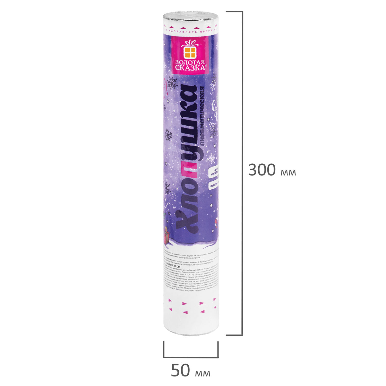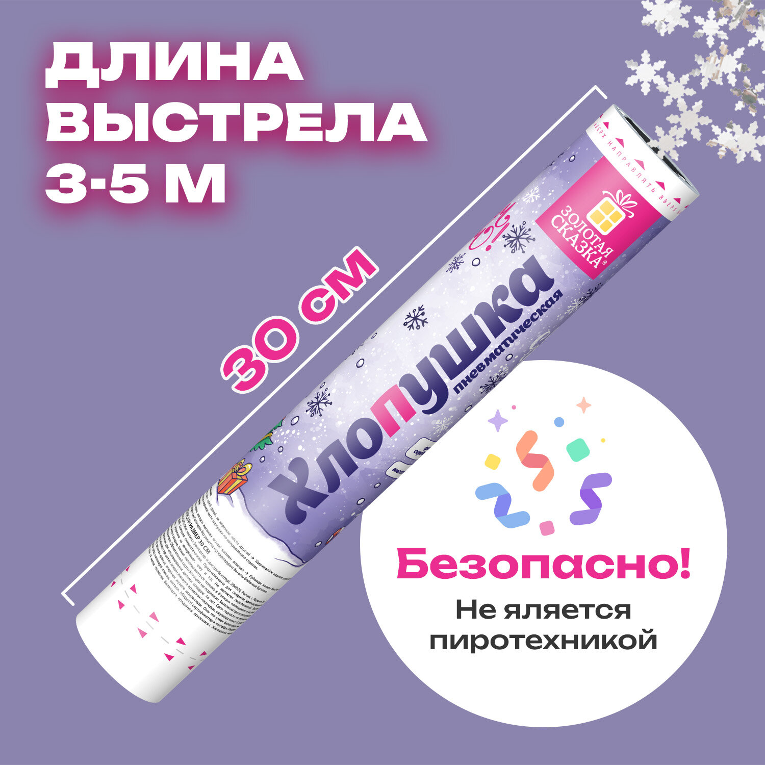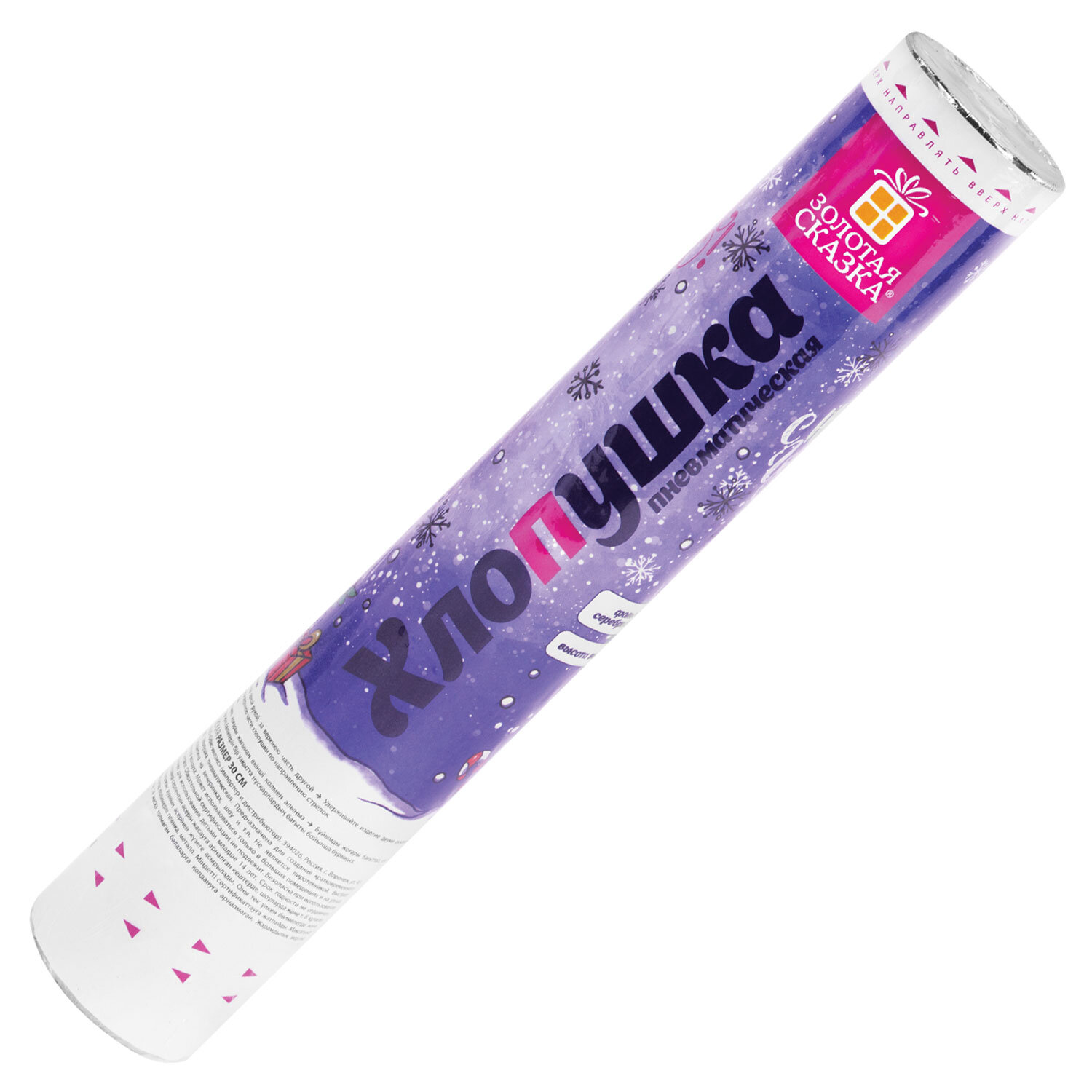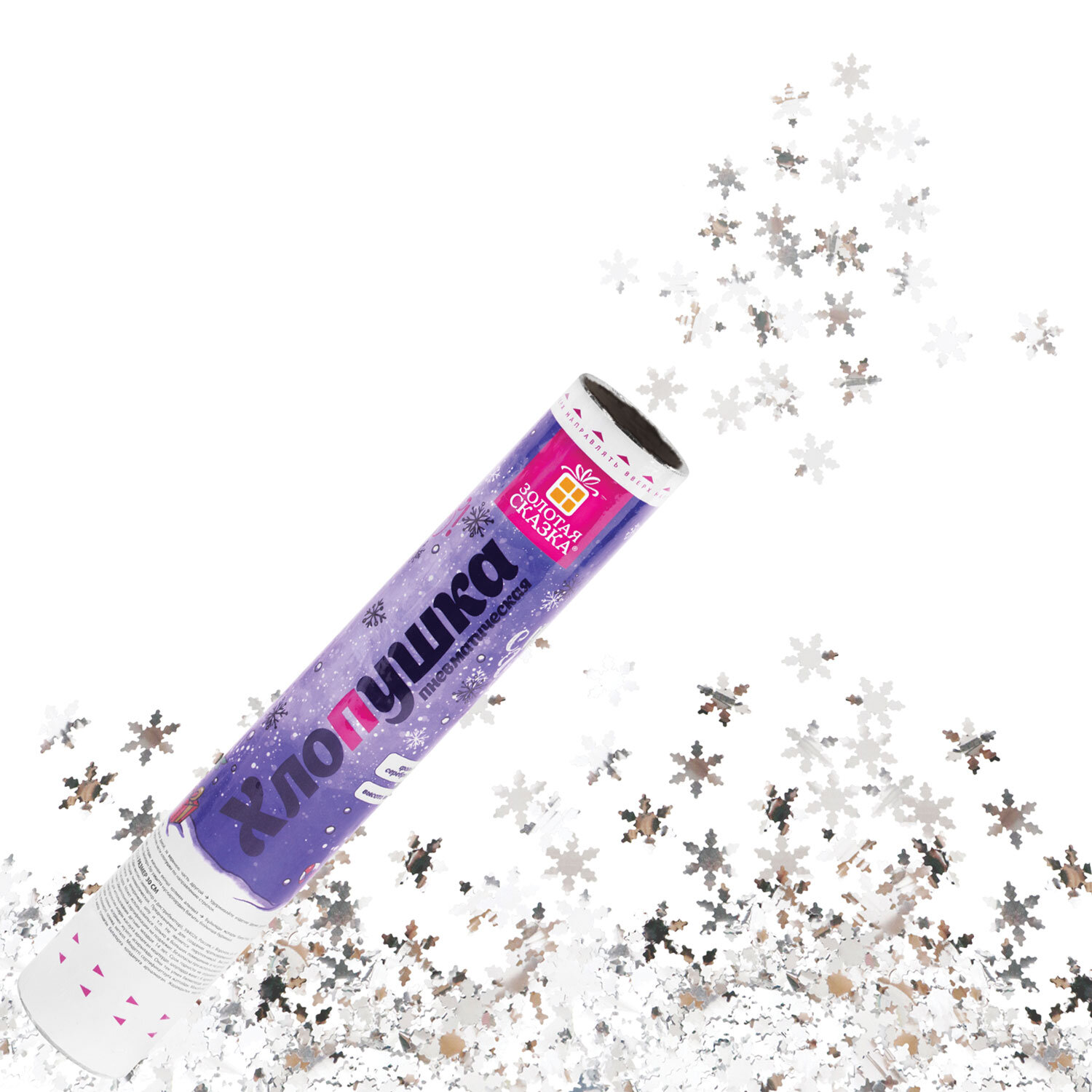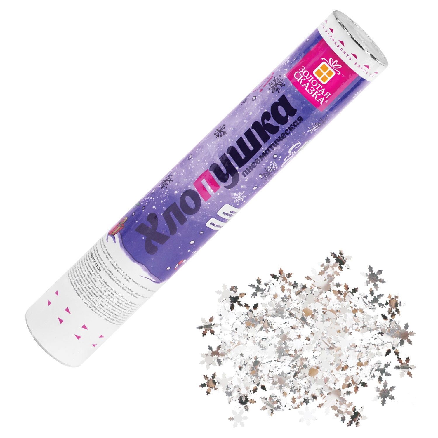Хлопушка пневматическая 30 см "Снежинки", фольга, серебро, ЗОЛОТАЯ СКАЗКА Код товара: 592460 183,75 ₽ Купить Производитель:ЗОЛОТАЯ СКАЗКА Пневматическая хлопушка не является пиротехникой и работает на основе энергии сжатого воздуха. Конфетти и серпантин ярких цветов можно использовать в помещении или на улице. Хлопушка подойдет для праздников, концертов, реквизита для фотосессии. Хлопушка высотой 30 см с фольгированным наполнителем в виде снежинок серебристого цвета является абсолютно безопасной. Выстрел осуществляется под действием сжатого воздуха. Не является пиротехникой. Средняя дальность выстрела – 3-5 м. Корпус хлопушки состоит из двух частей: пневматического баллона со сжатым воздухом и картонного цилиндра с наполнителем. Рекомендуется использовать хлопушку внутри больших помещений или на улице.Производство: КитайТип: пневматическаяДлина: 30 смКоличество в комплекте: 1 шт.Материал наполнителя: фольгаОсновной наполнитель: снежинкиЦвет наполнителя: серебристыйВес: 158 грРазмер упаковки: 4.9 × 31.5 × 4.9 смОбъём: 0.0009 м3Промежуточная упаковка: 12 штТранспортная упаковка: 72 штШтрих-код: 4606224503462 Файлы Сертификат-1.jpg Сертификат-2.jpg Сертификат-3.jpg Сертификат-4.jpg Сертификат-5.jpg Сертификат-6.jpg Сертификат-7.jpg Сертификат-8.jpg Сертификат-9.jpg Сертификат-10.jpg Сертификат-11.jpg Сертификат-12.jpg Сертификат-13.jpg Сертификат-14.jpg Сертификат-15.jpg Сертификат-16.jpg Сертификат-17.jpg Сертификат-18.jpg Сертификат-19.jpg Сертификат-20.jpg Сертификат-21.jpg Сертификат-22.jpg Сертификат-23.jpg Сертификат-24.jpg Сертификат-25.jpg Сертификат-26.jpg
