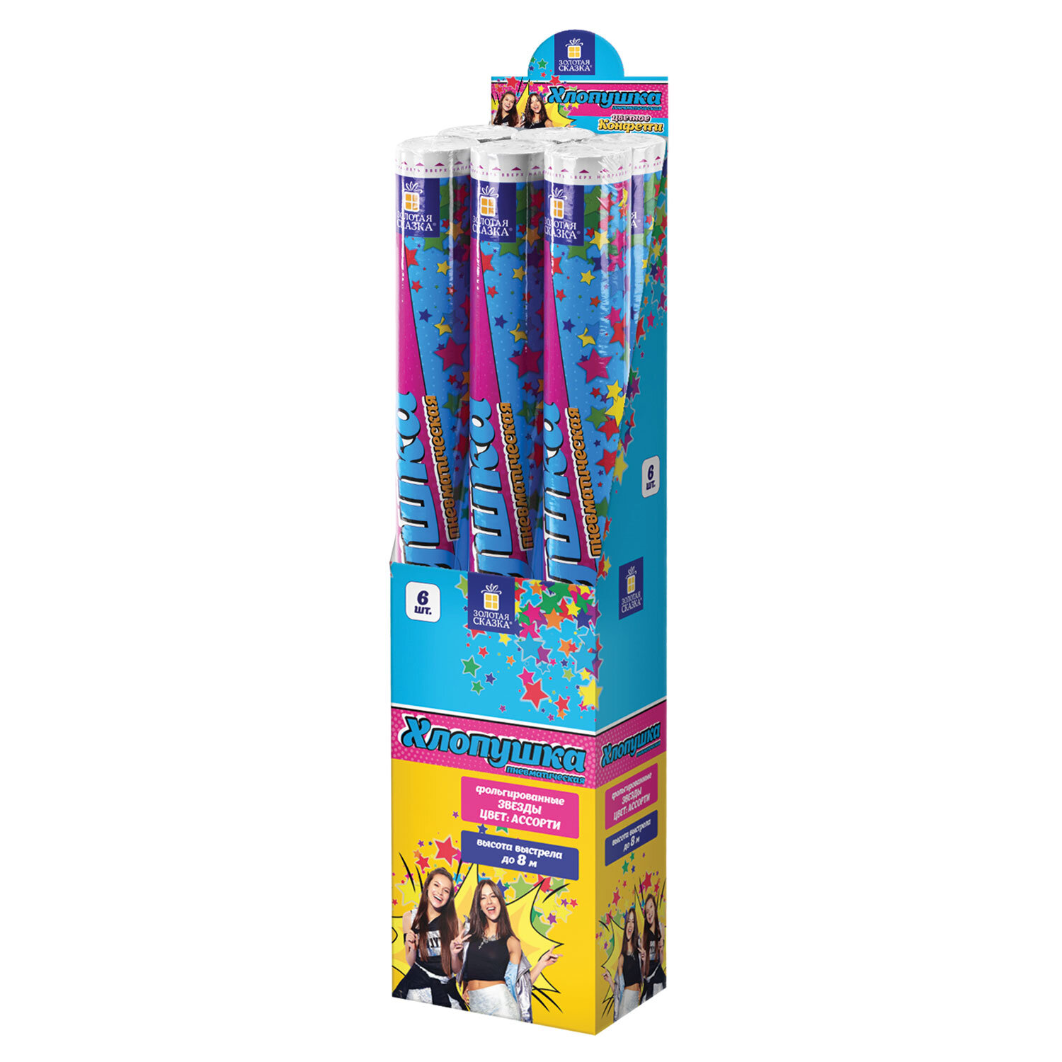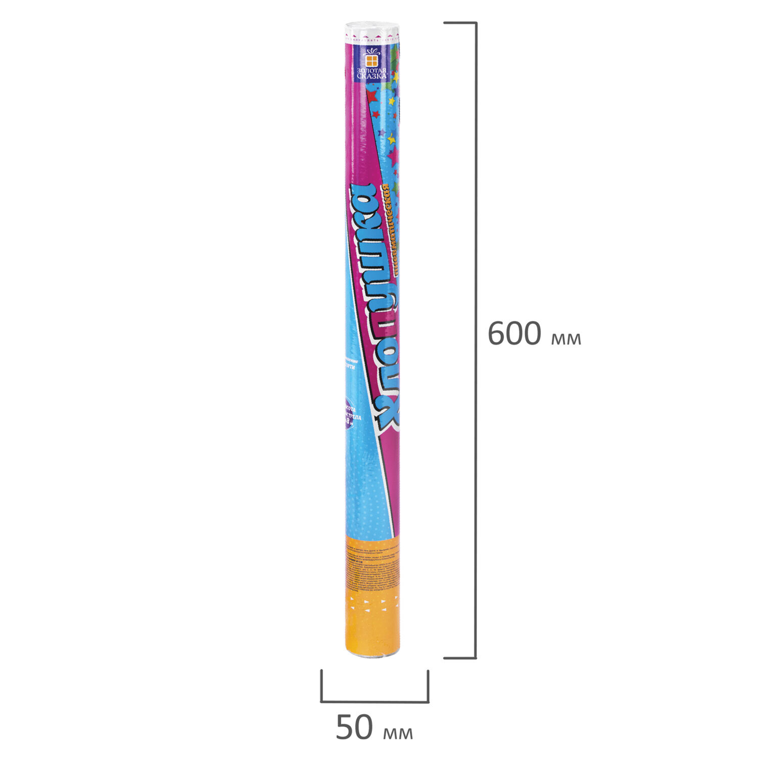 Хлопушка пневматическая 60 см "XXL ЗВЕЗДЫ", фольга, ассорти, ЗОЛОТАЯ СКАЗКА Код товара: 592466 286,9 ₽ Купить Производитель:ЗОЛОТАЯ СКАЗКА Пневматическая хлопушка не является пиротехникой и работает на основе энергии сжатого воздуха. Конфетти и серпантин ярких цветов можно использовать в помещении или на улице. Хлопушка подойдет для праздников, концертов, реквизита для фотосессии. Хлопушка высотой 60 см с фольгированным наполнителем в виде разноцветных звезд является абсолютно безопасной. Выстрел осуществляется под действием сжатого воздуха. Не является пиротехникой. Средняя дальность выстрела – 5-8 м. Корпус хлопушки состоит из двух частей: пневматического баллона со сжатым воздухом и картонного цилиндра с наполнителем. Рекомендуется использовать хлопушку внутри больших помещений или на улице.Производство: КитайТип: пневматическаяДлина: 60 смКоличество в комплекте: 1 шт.Материал наполнителя: фольгаОсновной наполнитель: звездыЦвет наполнителя: разноцветныйВес: 258 грРазмер упаковки: 5 × 60.2 × 5 смОбъём: 0.0019 м3Промежуточная упаковка: 6 штТранспортная упаковка: 60 штШтрих-код: 4606224503523 Файлы Сертификат-1.jpg Сертификат-2.jpg Сертификат-3.jpg Сертификат-4.jpg Сертификат-5.jpg Сертификат-6.jpg Сертификат-7.jpg Сертификат-8.jpg Сертификат-9.jpg Сертификат-10.jpg Сертификат-11.jpg Сертификат-12.jpg Сертификат-13.jpg Сертификат-14.jpg Сертификат-15.jpg Сертификат-16.jpg Сертификат-17.jpg Сертификат-18.jpg Сертификат-19.jpg Сертификат-20.jpg Сертификат-21.jpg Сертификат-22.jpg Сертификат-23.jpg Сертификат-24.jpg Сертификат-25.jpg Сертификат-26.jpg