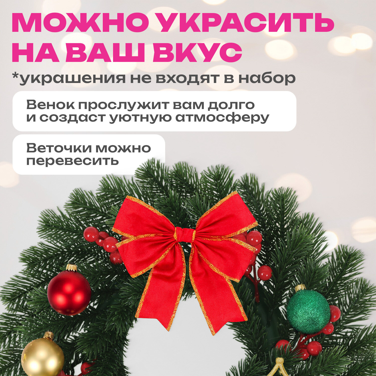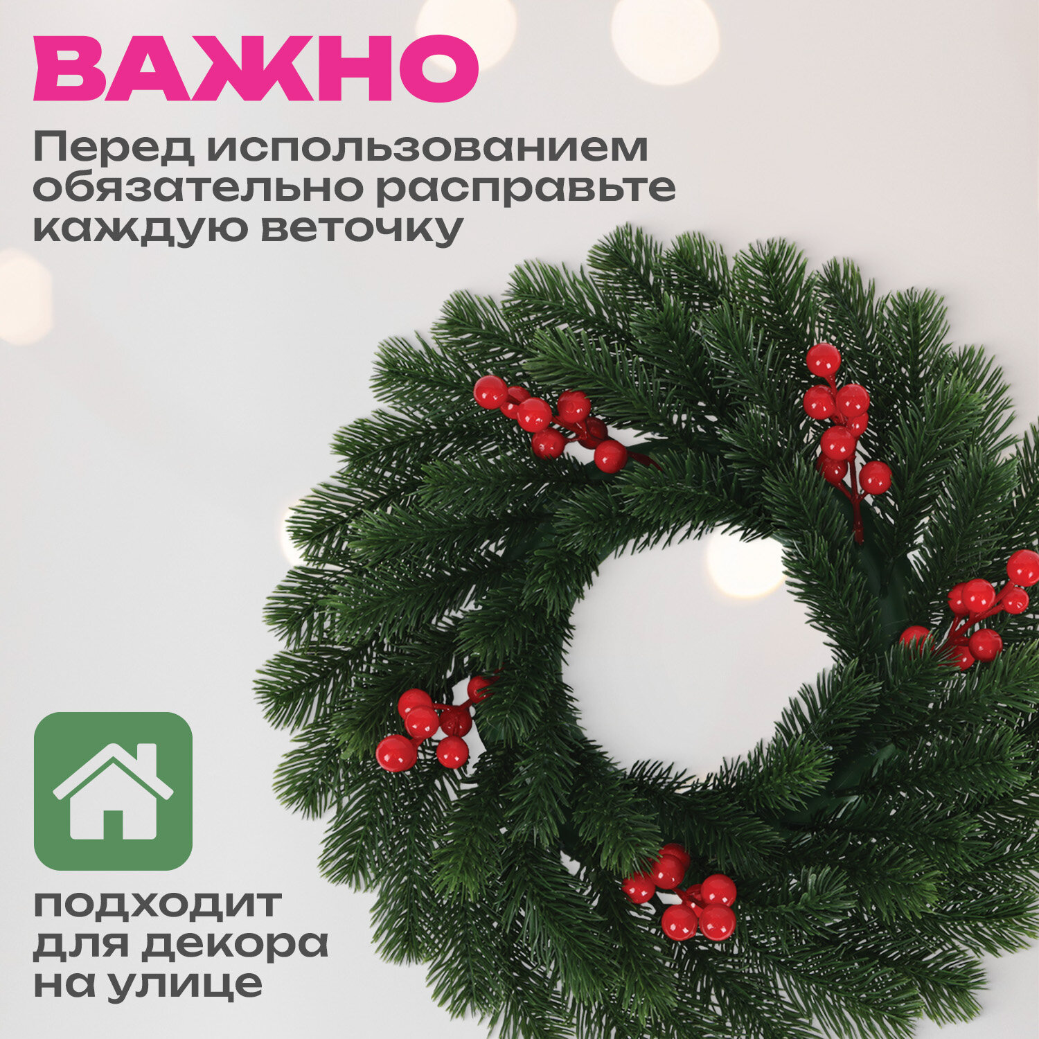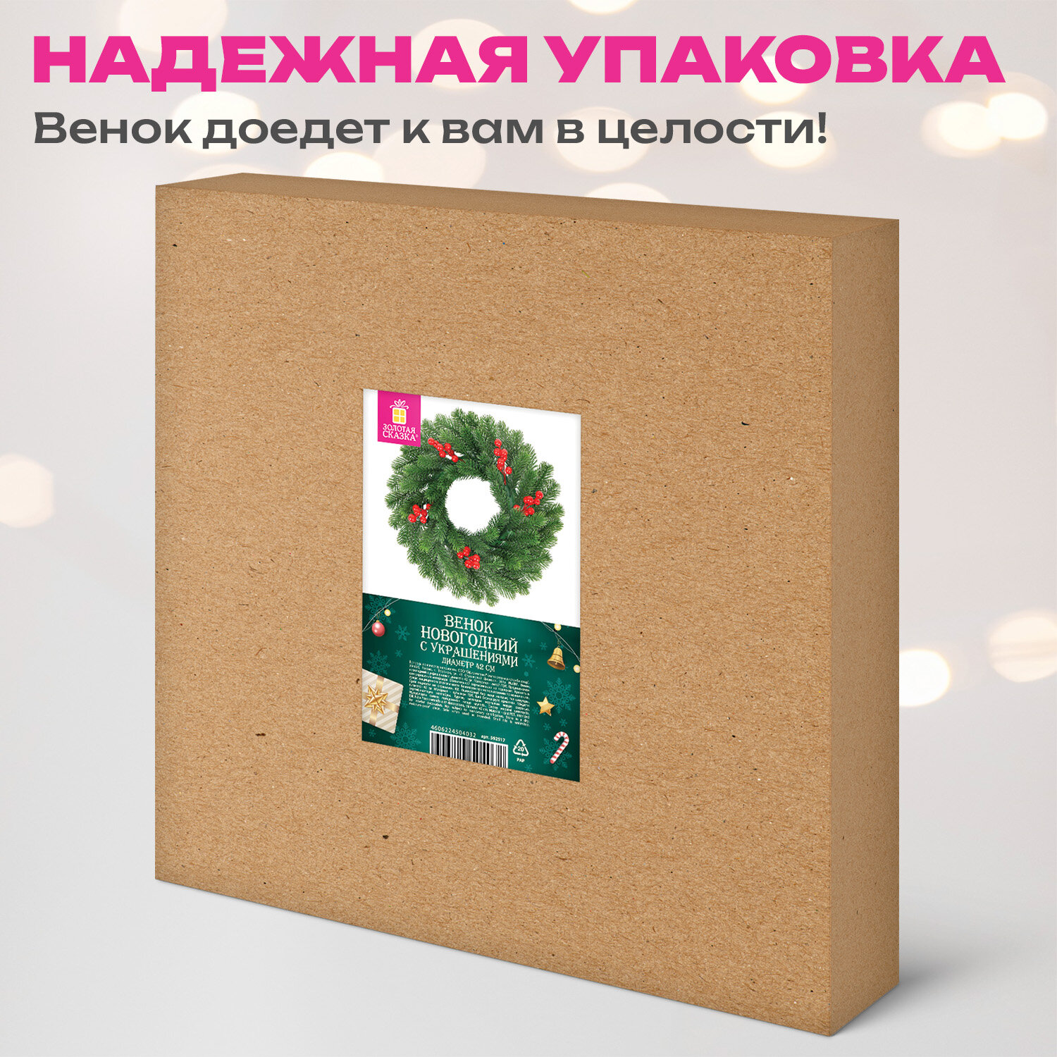 Венок новогодний, диаметр 42 см "Красные ягодки", с декором, литой ПЭТ, ЗОЛОТАЯ СКАЗКА Код товара: 592517 803,11 ₽ Купить Производитель:ЗОЛОТАЯ СКАЗКА Венок новогодний ЗОЛОТАЯ СКАЗКА станет прекрасным украшением для дома или офиса. Венок преобразит пространство и подарит ощущение праздника. Венок новогодний, диаметром 42 см представляет собой конструкцию из пластикового каркаса и закрепленных к нему ветвей. Материал – 100% литой ПЭТ. Цвет хвои – зелёный. Венок из литой ели украшен ветками красный ягодок. Венок выглядит, как натуральный, и создает особую праздничную атмосферу. На задней части основания венка расположено отверстие, за которое можно легко повесить венок на стену или дверь. Можно разместить не только на вертикальную, но и горизонтальную поверхность, сделав частью новогоднего украшения.Производство: КитайТип товара: ВенокМатериал: литой ПЭТДлина: 42 смШирина: 42 смЦвет: зеленыйСпособ крепления: крючокДизайн: Красные ягодкиВес: 434 грРазмер упаковки: 8.2 × 31.2 × 31.2 смОбъём: 0.0093 м3Промежуточная упаковка: 12 штТранспортная упаковка: 12 штШтрих-код: 4606224504032 Файлы Сертификат-1.jpg Сертификат-2.jpg Сертификат-3.jpg Сертификат-4.jpg Сертификат-5.jpg Сертификат-6.jpg Сертификат-7.jpg Сертификат-8.jpg Сертификат-9.jpg Сертификат-10.jpg Сертификат-11.jpg Сертификат-12.jpg Сертификат-13.jpg Сертификат-14.jpg Сертификат-15.jpg Сертификат-16.jpg Сертификат-17.jpg Сертификат-18.jpg Сертификат-19.jpg Сертификат-20.jpg Сертификат-21.jpg Сертификат-22.jpg Сертификат-23.jpg Сертификат-24.jpg Сертификат-25.jpg Сертификат-26.jpg