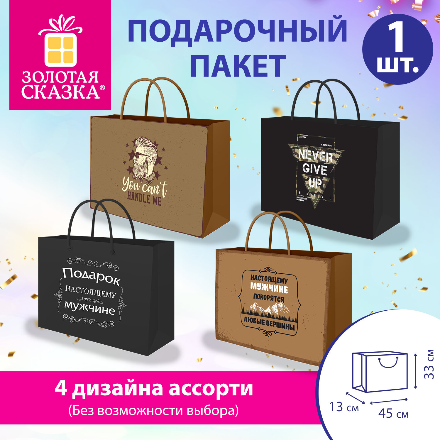 Пакет подарочный (1 штука) 45х13х33 см (XL), "For Real Man", ассорти, крафт, ЗОЛОТАЯ СКАЗКА Код товара: 700827 74,06 ₽ Купить Производитель:ЗОЛОТАЯ СКАЗКА Подарочный пакет "For Real Man" ЗОЛОТАЯ СКАЗКА – отличное решение для упаковки любого презента: пакет позволит с легкостью и со вкусом оформить выбранный подарок. Изготовлен из крафтовой бумаги с веревочными ручками из полипропилена. Подарочный пакет из крафтовой бумаги – идеальное решение для вашего праздника! Благодаря плотности 150 г/м2 пакет надежно удерживает свою форму и защищает содержимое, сохраняя ваш подарок в идеальном состоянии. Яркие и оригинальные дизайны (4 варианта ассорти) придадут вашему подарку особый шарм и настроение. Оптимальный размер (45х13х33 см) идеально подходит для различных подарков – от маленького сюрприза до крупного презента. Удобные плетеные ручки обеспечивают комфортное ношение, добавляя элегантности и стиля вашему подарку.Производство: КитайФормат: горизонтальныйВид пакета: штучныйДизайн: For Real ManМатериал: крафт-бумагаКоличество в комплекте: 1 шт.С рисунком: даЦвет: ассортиРазмер пакета: XL (45x13x33) смФормат размера пакета: XLВес: 130 грРазмер упаковки: 0.3 × 44.8 × 33 смОбъём: 0.0005 м3Промежуточная упаковка: 12 штТранспортная упаковка: 72 штШтрих-код: 4606224498676 Файлы Сертификат-1.jpg Сертификат-2.jpg