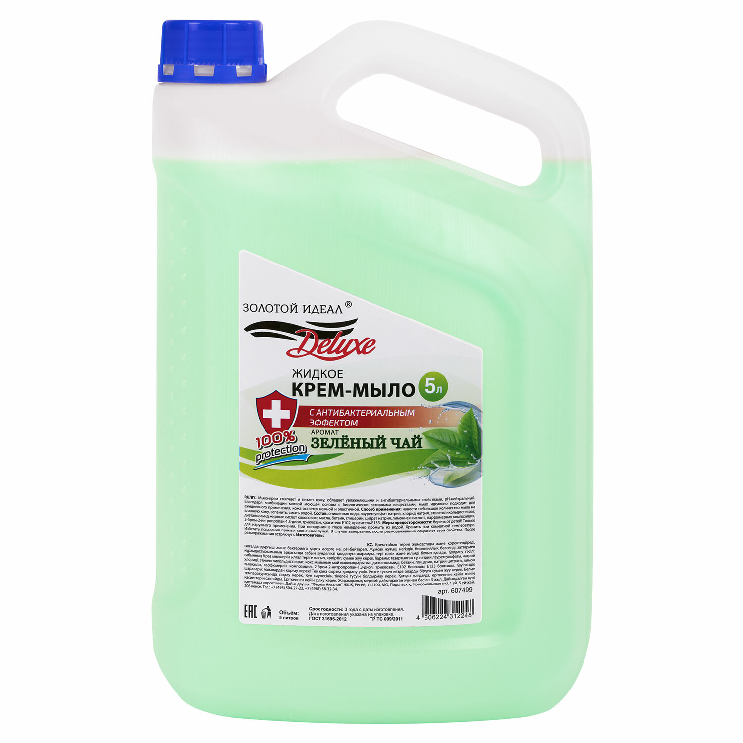 Мыло-крем жидкое c АНТИБАКТЕРИАЛЬНЫМ ЭФФЕКТОМ, 5 л, ЗОЛОТОЙ ИДЕАЛ DELUXE "Зеленый чай", перламутровое Код товара: 607499 875,12 ₽ Купить Производитель:ЗОЛОТОЙ ИДЕАЛ Жидкое мыло ЗОЛОТОЙ ИДЕАЛ "Зеленый чай" идеально подходит для использования в офисах, отелях, ресторанах и других общественных местах. Мыло-крем смягчает и питает кожу, обладает увлажняющими и антибактериальными свойствами, pH-нейтральный. Благодаря комбинации мягкой моющей основы с биологически активными веществами, мыло идеально подходит для ежедневного применения, кожа остается нежной и эластичной. Способ применения: нанести небольшое количество мыла на влажную кожу, вспенить, смыть водой. Состав: очищенная вода, лауретсульфат натрия, хлорид натрия, этиленгликольдистеарат, диэтаноламид жирных кислот кокосового масла, бетаин, глицерин, цитрат натрия, лимонная кислота, парфюмерная композиция, 2-бром-2-нитропропан-1,3-диол, триклозан, краситель Е102, краситель Е133. Срок годности: 3 года с даты изготовления. Соответствует ГОСТ 31696-2012.Производство: РоссияОбъем / Вес: 5000 мл/гМыло-крем: даПодходящий тип кожи: для всех типовЭффект от использования: антибактериальный, очищение, смягчение, увлажнениеСерия: SOAPОтдушка: зелёный чайСбалансированный уровень рН: даТип дозирования: нетВид упаковки: канистраЦвет: зелёныйСрок годности: 36 месРазмер упаковки: 29.9 × 19.1 × 14.4 смОбъём: 0.0089 м3Промежуточная упаковка: 4 штТранспортная упаковка: 4 штШтрих-код: 4606224312248 Сертификат-1.jpg Сертификат-2.jpg Сертификат-3.jpg
